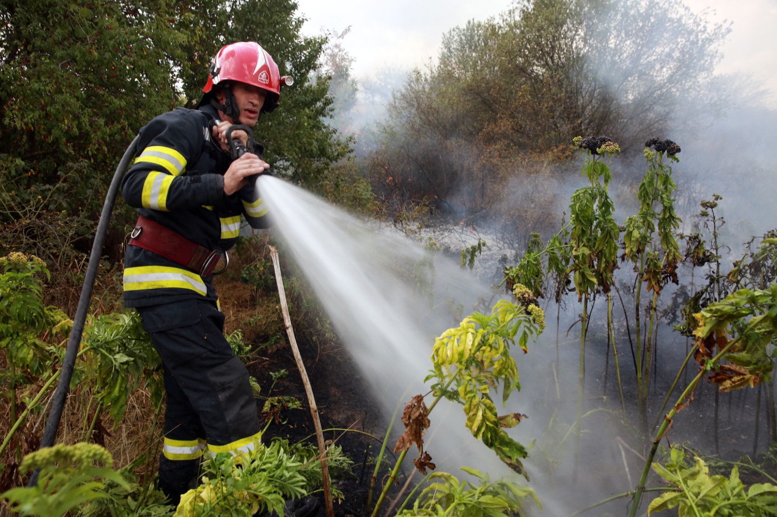 8月7日,在羅馬尼亞泰萊奧爾曼縣,消防員撲滅一處高溫引發(fā)的火災(zāi)。