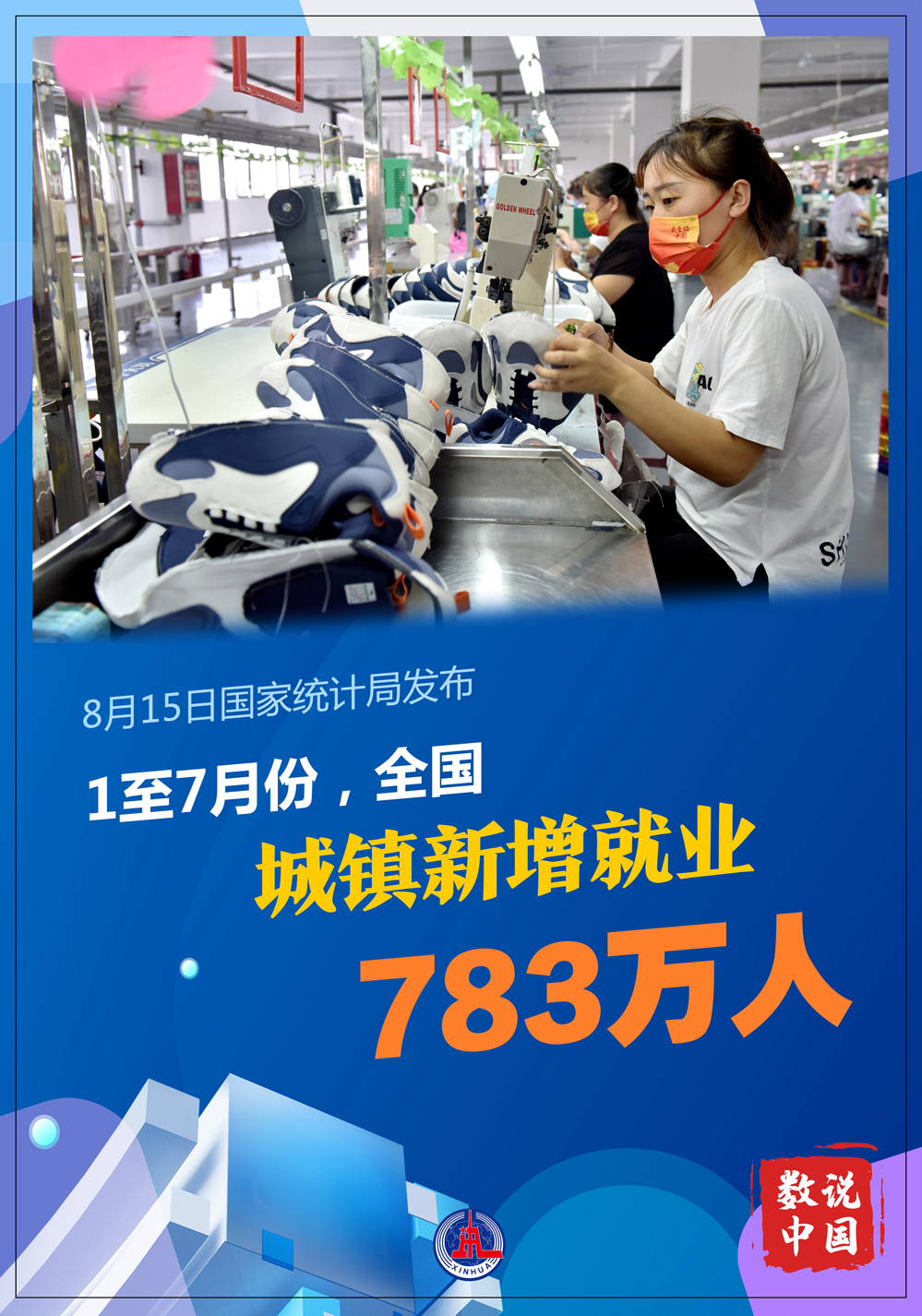 國(guó)家統(tǒng)計(jì)局8月15日發(fā)布數(shù)據(jù)顯示,1至7月份,全國(guó)城鎮(zhèn)新增就業(yè)783萬(wàn)人。