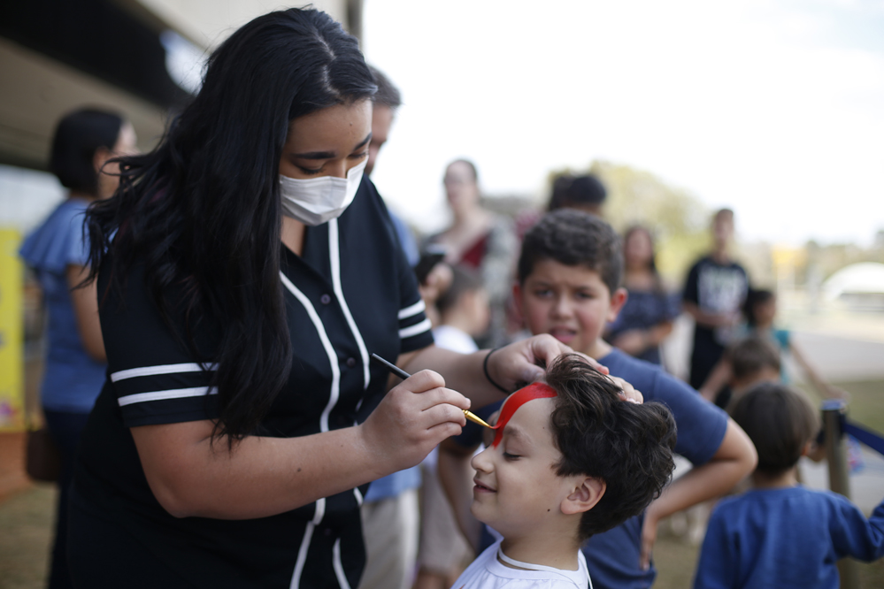 8月13日,在巴西首都巴西利亞舉辦的“中國一瞬”文化體驗(yàn)周活動(dòng)上,一名男孩體驗(yàn)面部彩繪。