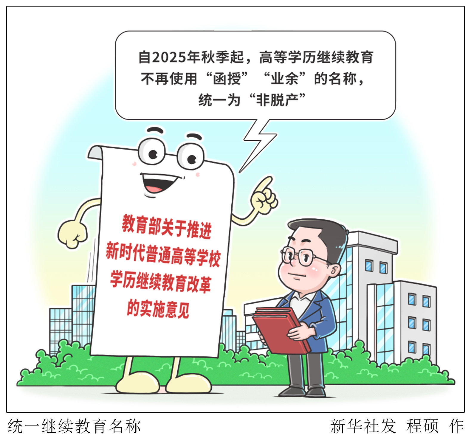 記者8月17日從教育部獲悉,《教育部關(guān)于推進(jìn)新時(shí)代普通高等學(xué)校學(xué)歷繼續(xù)教育改革的實(shí)施意見(jiàn)》近日印發(fā),要求自2025年秋季起,高等學(xué)歷繼續(xù)教育不再使用“函授”“業(yè)余”的名稱,統(tǒng)一為“非脫產(chǎn)”,主辦高校可根據(jù)專業(yè)特點(diǎn)和學(xué)生需求等,靈活采取線上線下相結(jié)合形式教學(xué)。