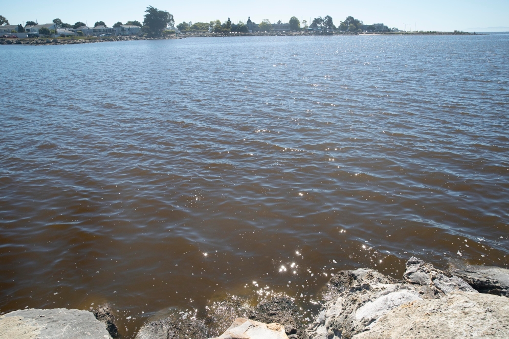 8月22日,美國(guó)加利福尼亞州舊金山灣區(qū)阿拉米達(dá)縣的一處海面呈現(xiàn)棕色。