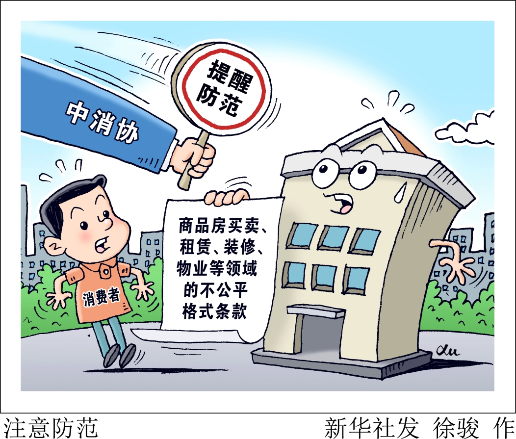 聚焦商品房買賣、租賃、裝修、物業(yè)等領域的不公平格式條款,中消協(xié)9月21日發(fā)布點評,提醒消費者注意防范。