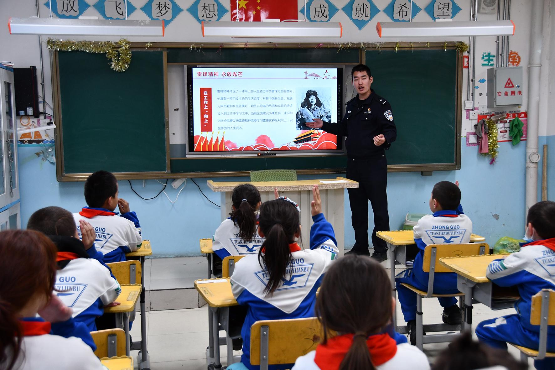 3月1日,甘肅省臨澤縣公安局民輔警走進轄區(qū)幼兒園,向小朋友們講述雷鋒精神的時代內(nèi)涵和學習雷鋒精神的重要意義,讓雷鋒精神代代傳承。