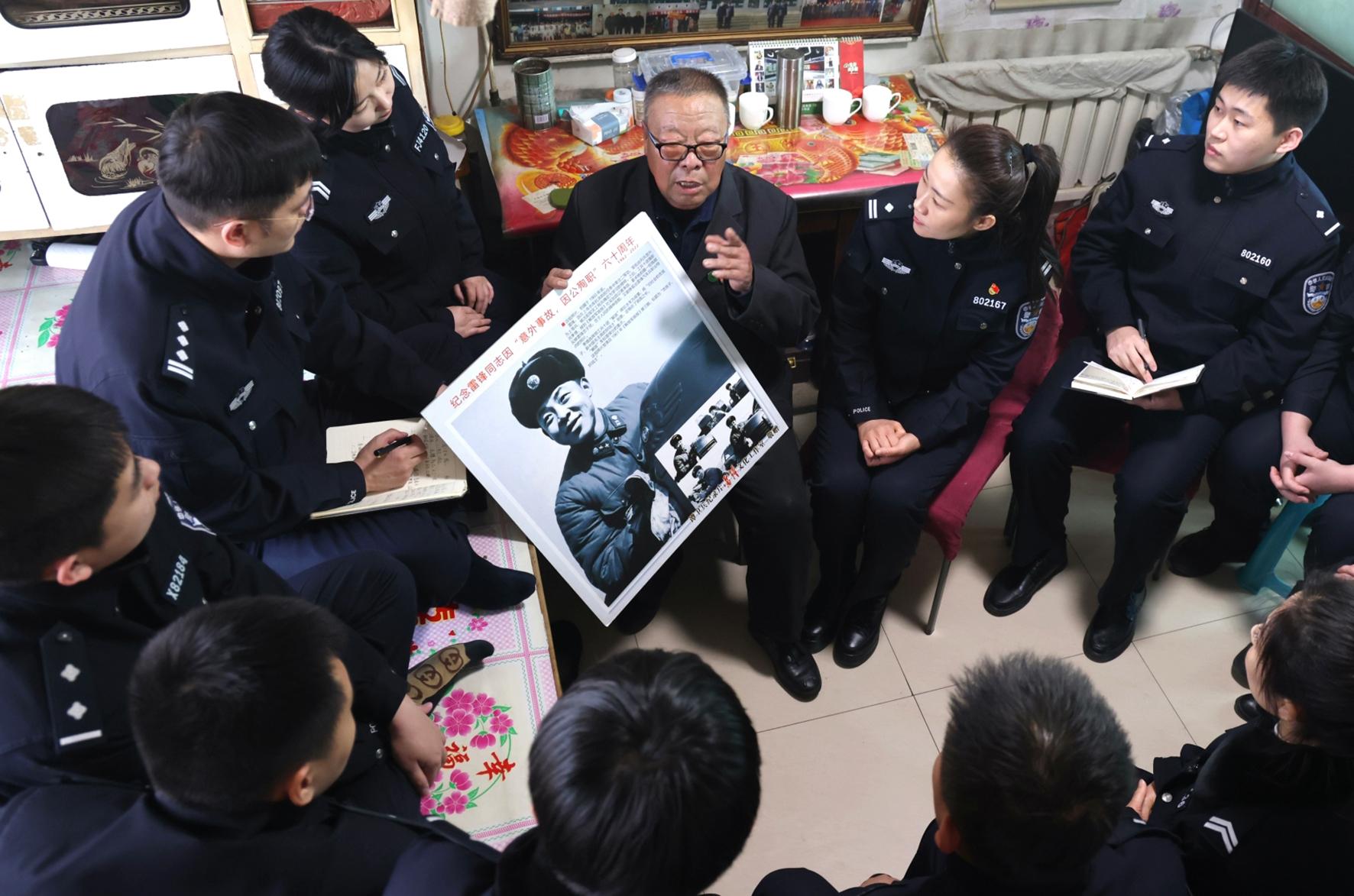 圖為民警認真聆聽老英雄講述抗美援朝戰(zhàn)爭中的英雄事跡。