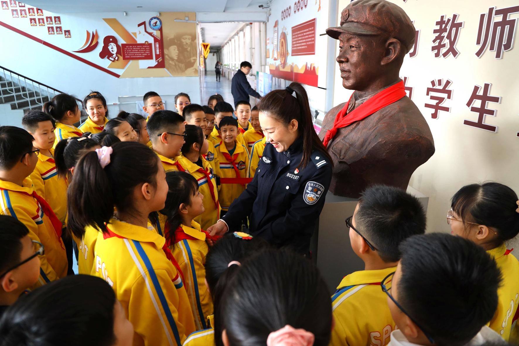 3月2日,河南省鄭州市公安局金水分局巡特警隊(duì)員在實(shí)驗(yàn)小學(xué)開展“雷鋒精神 春暖校園”活動(dòng)。