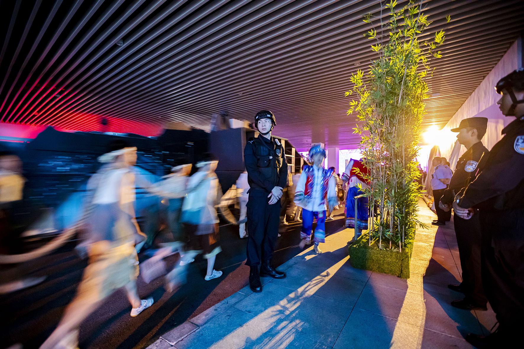 圖為民輔警在演職人員通道維護秩序。
