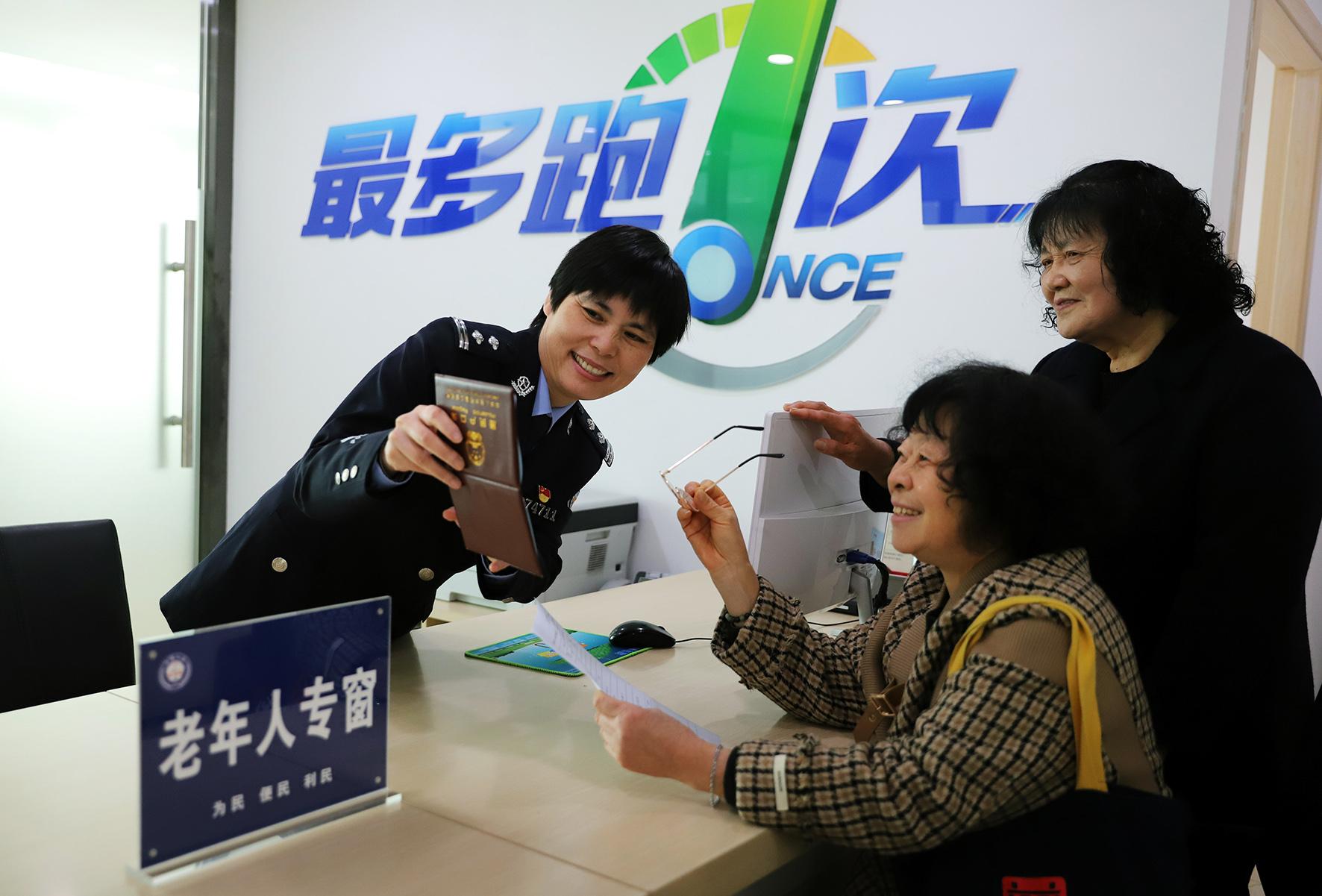 4月7日,浙江省臺州市公安局路橋分局橫街派出所民警在“老年人專窗”為老年人辦理戶籍業(yè)務。今年以來,臺州市公安局路橋分局為方便老年人辦事,各辦證窗口專門開設了老年人服務窗口。