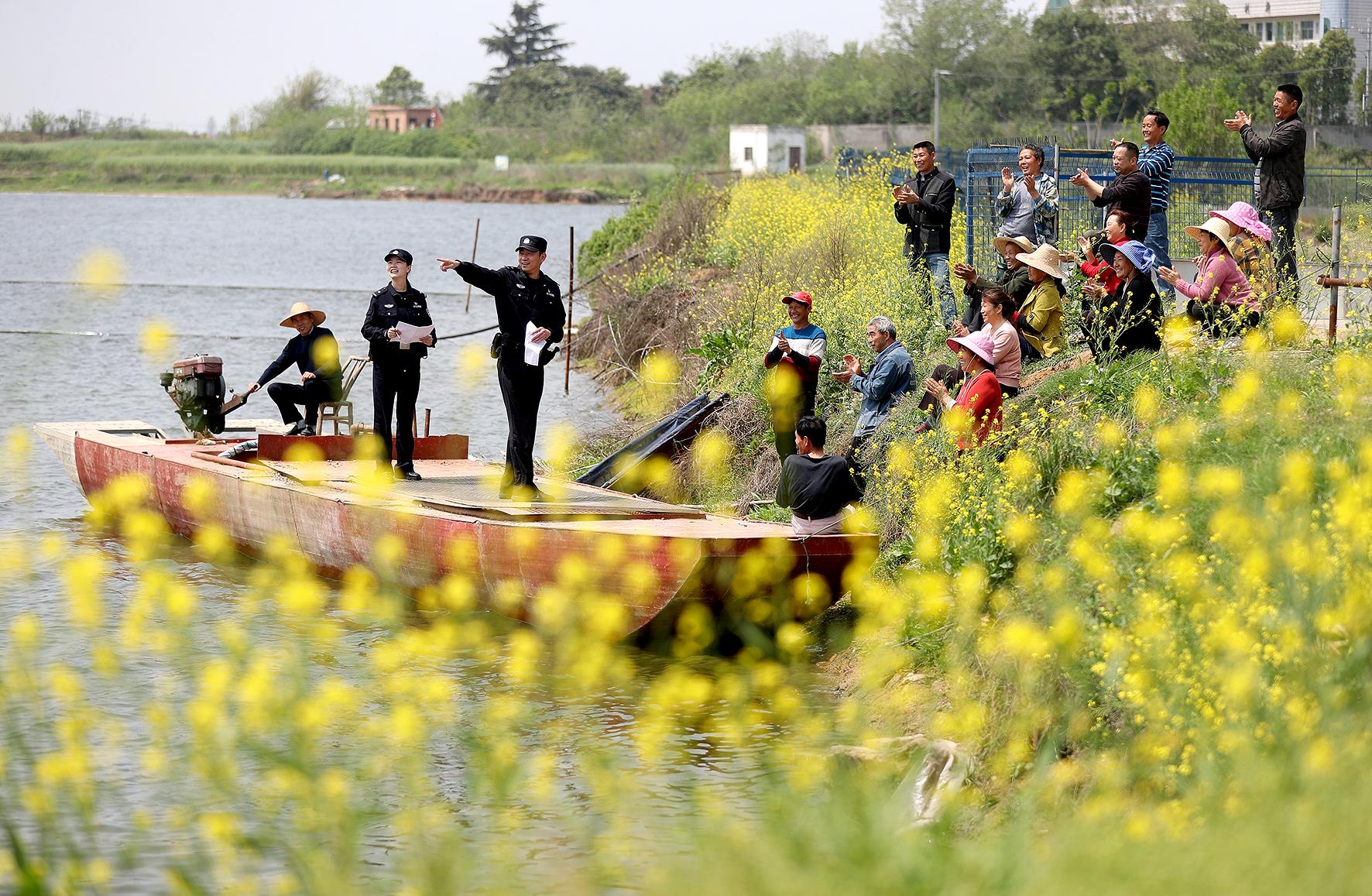 4月10日,在湖北省沙洋縣長湖濕地自然保護區(qū)后港水域,沙洋縣公安局后港水陸派出所民警以“法治講堂”形式,向沿岸村民開展生態(tài)保護普法宣講。