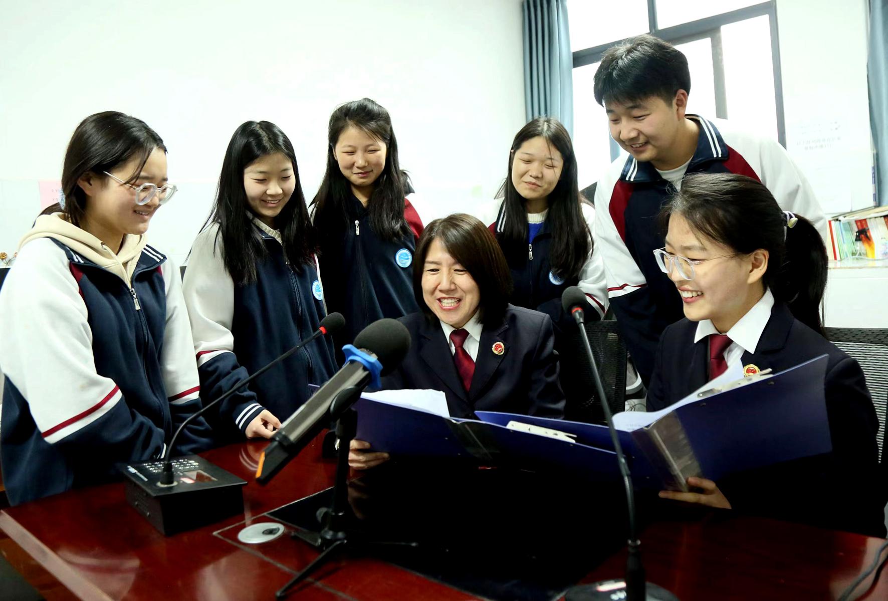 4月24日,河南省汝陽縣人民檢察院檢察官與汝陽縣中等專業(yè)學校廣播站播音員共同商討辦好普法專欄。