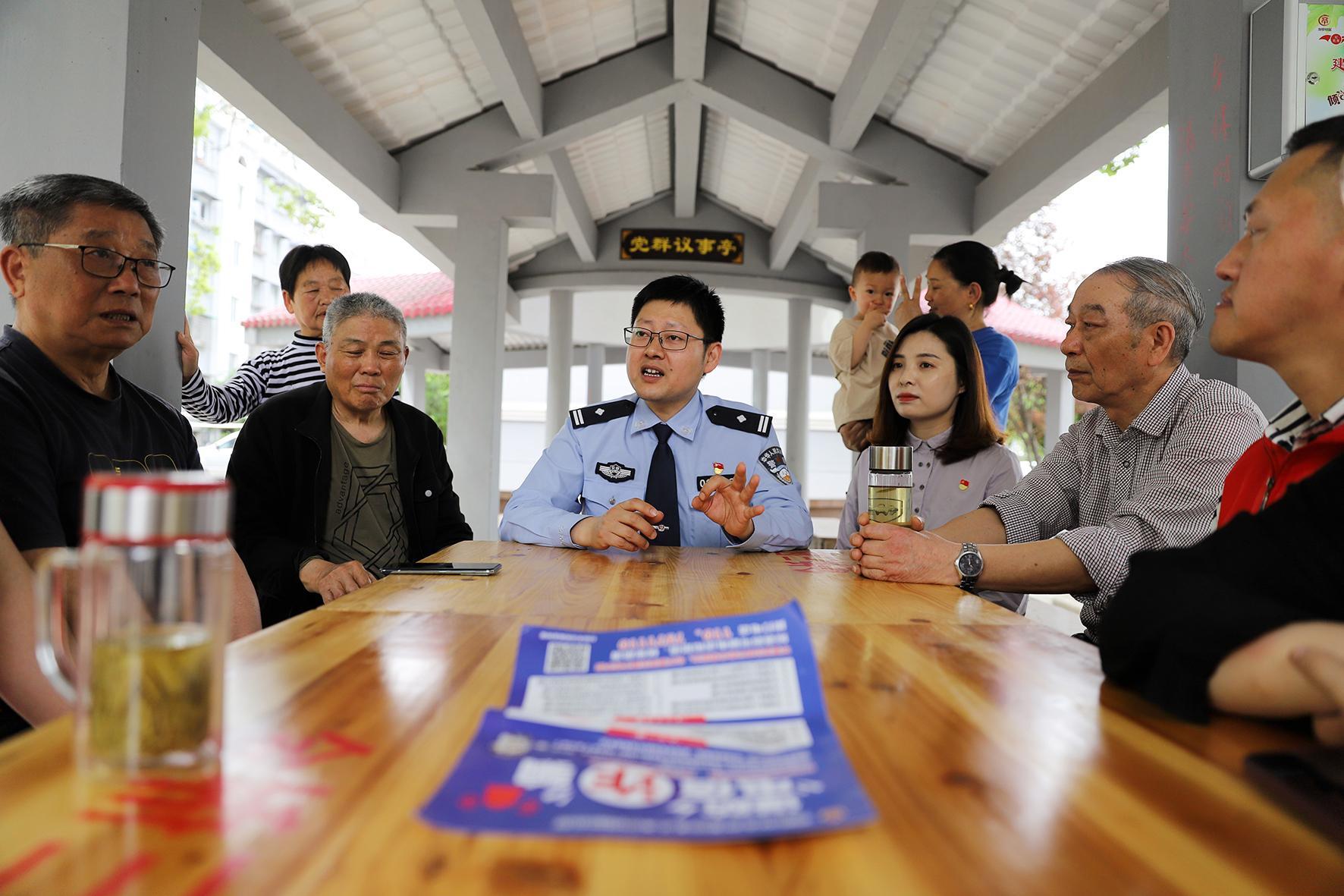 4月18日,安徽省蕪湖市公安局繁昌分局城關(guān)派出所民警在龍亭社區(qū)“小亭議事亭”,向市民了解治安狀況,共話平安建設。