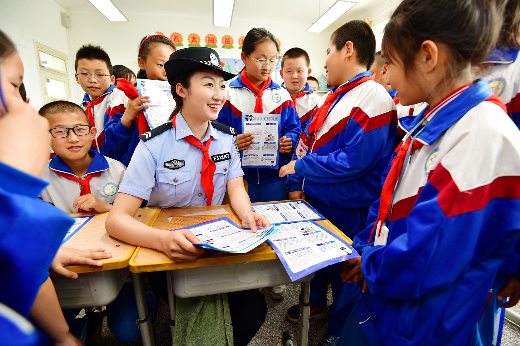 5月29日,安徽省阜南縣公安局交管大隊(duì)組織民輔警走進(jìn)轄區(qū)中小學(xué)校,通過教育宣講、游戲體驗(yàn)等形式,讓孩子們從小學(xué)習(xí)安全知識,提高安全意識和安全防護(hù)能力。
