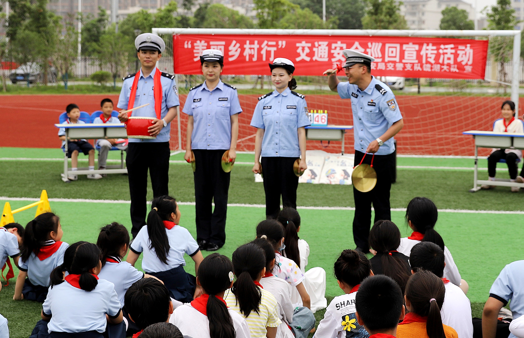 5月30日,安徽省蕪湖市公安局交警支隊(duì)民警走進(jìn)北塘小學(xué)開展“美麗鄉(xiāng)村行”交通安全知識巡回宣講活動。民警采用說唱、搶答、游戲等多種形式,向孩子們宣傳交通安全知識。