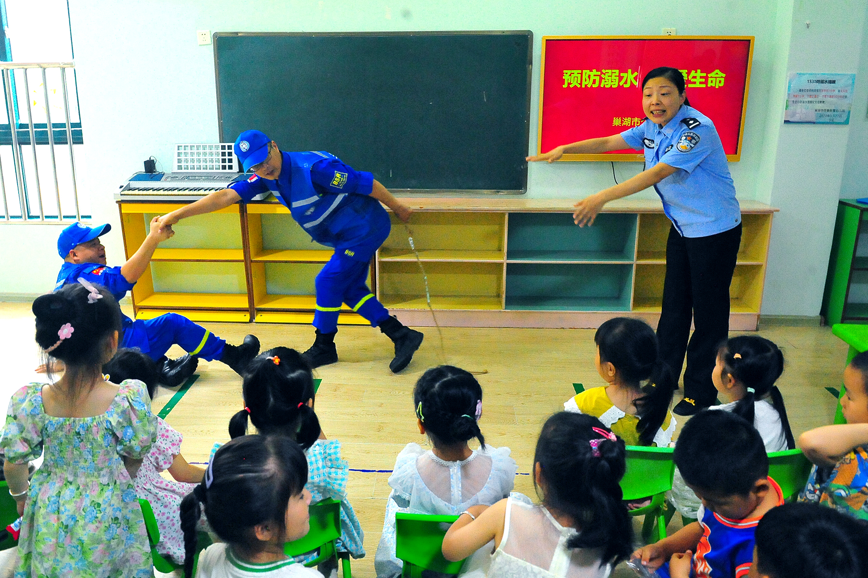5月29日,安徽省巢湖市公安局臥牛派出所民警聯(lián)合藍(lán)天救援隊(duì)來到信泰幼兒園,為學(xué)生們宣講防溺水知識。