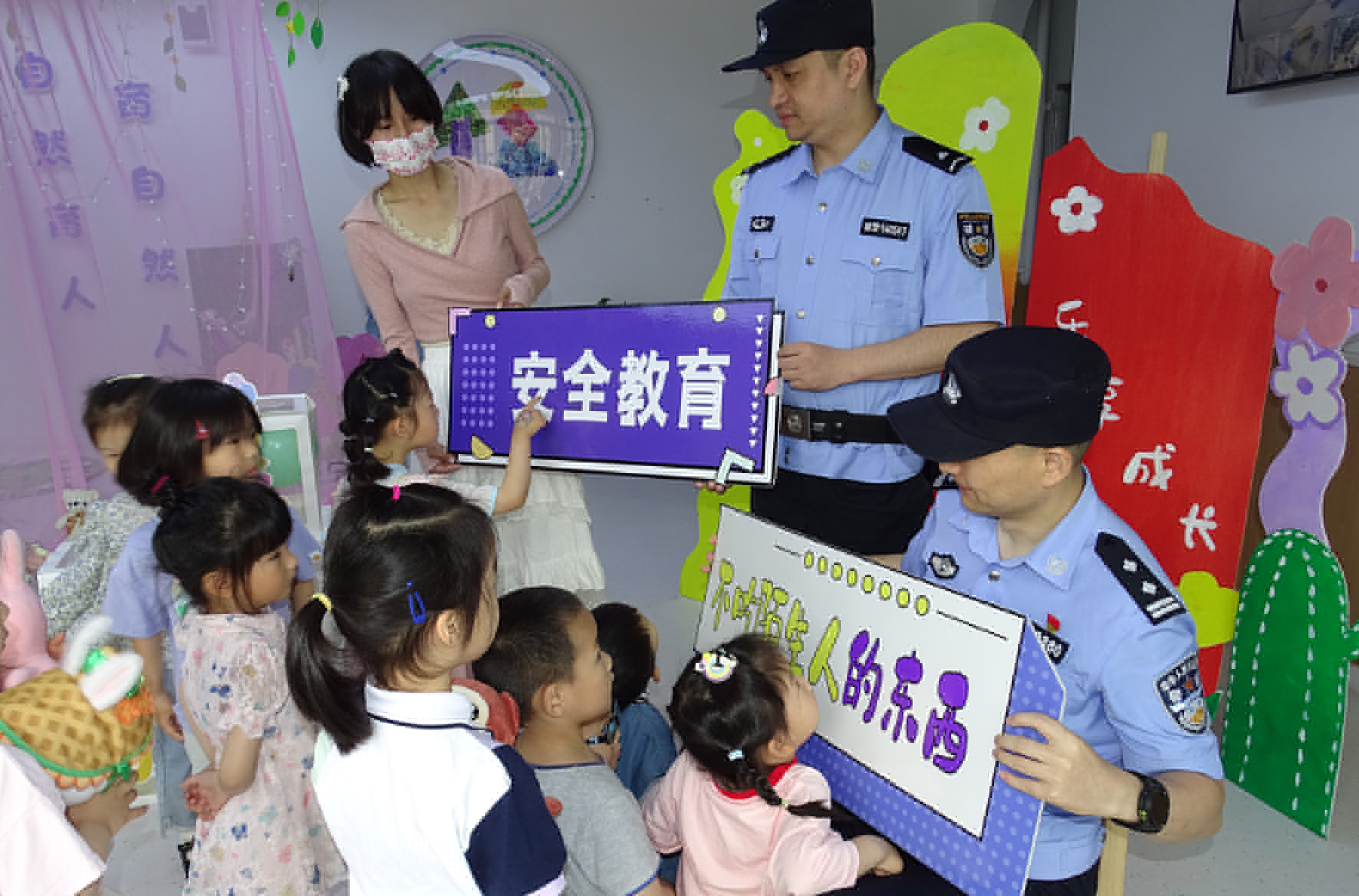 5月29日,河南省??h公安局白寺派出所民輔警走進(jìn)轄區(qū)幼兒園,通過游戲互動方式,面對面向小朋友講述各類安全防護(hù)知識,為孩子們送上節(jié)日平安禮包。