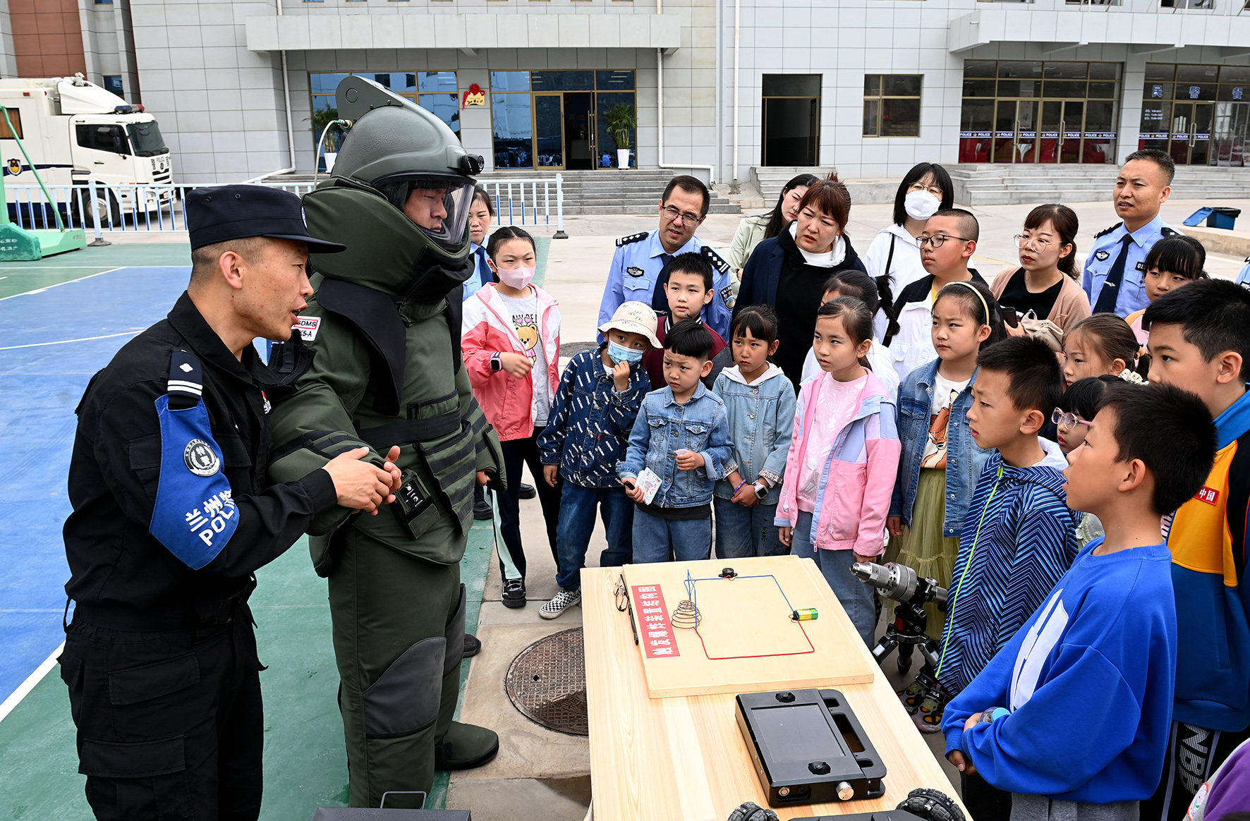 5月27日,甘肅省蘭州市公安局組織開展“童心連警心·歡樂慶六一”警寶進(jìn)警營活動,邀請民輔警適齡子女走進(jìn)警營,近距離感受警察風(fēng)采。