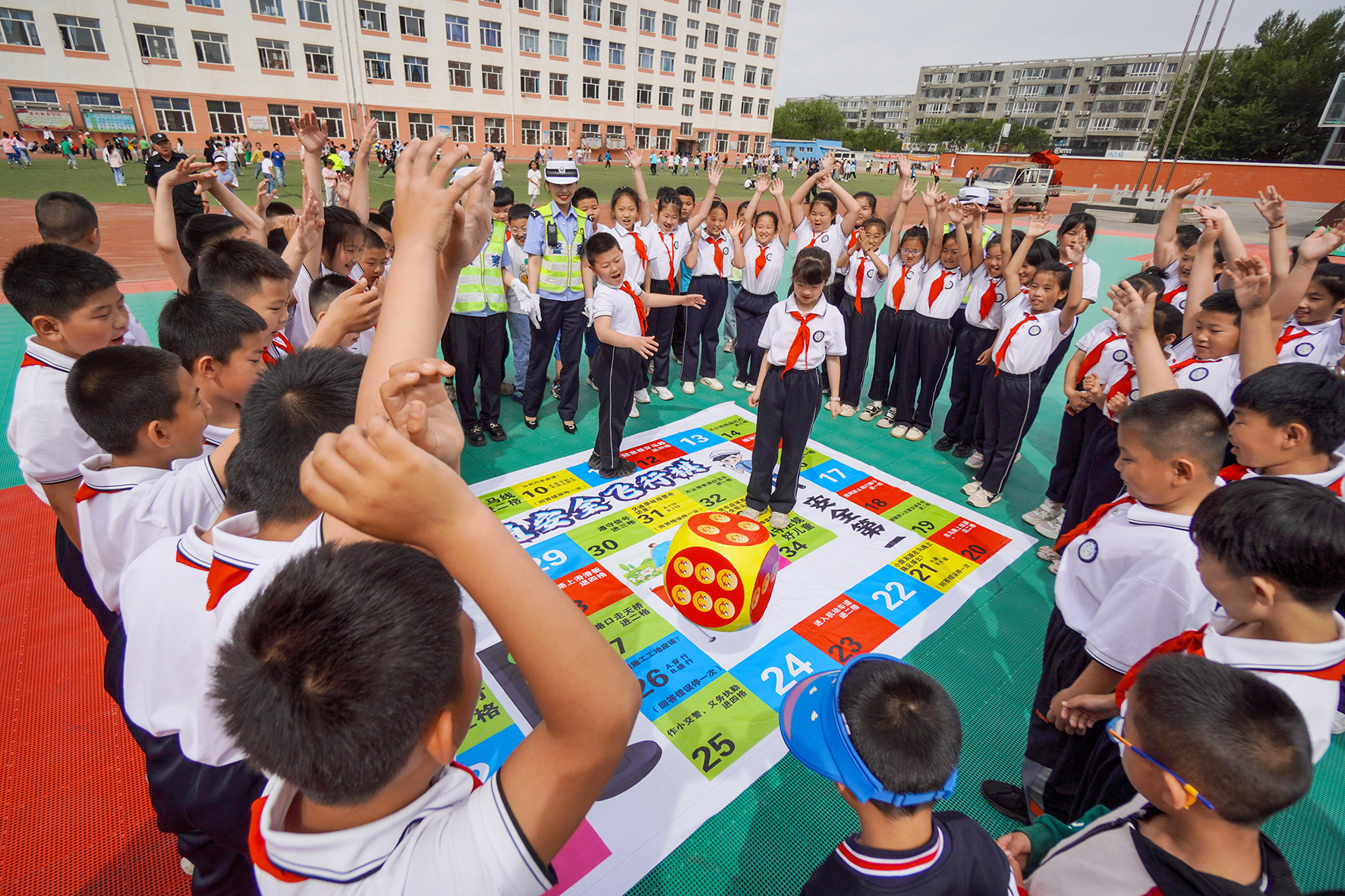 5月30日,遼寧省阜新市公安局交警支隊(duì)太平大隊(duì)民警來到轄區(qū)小學(xué)校,與同學(xué)們一起在互動游戲中學(xué)習(xí)交通安全知識。