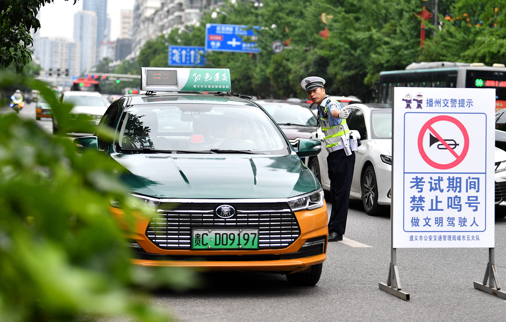 6月7日,貴州省遵義市公安局民警在各考點開展治安巡邏值守、交通秩序維護、為考生提供服務(wù),全力以赴保駕護航。