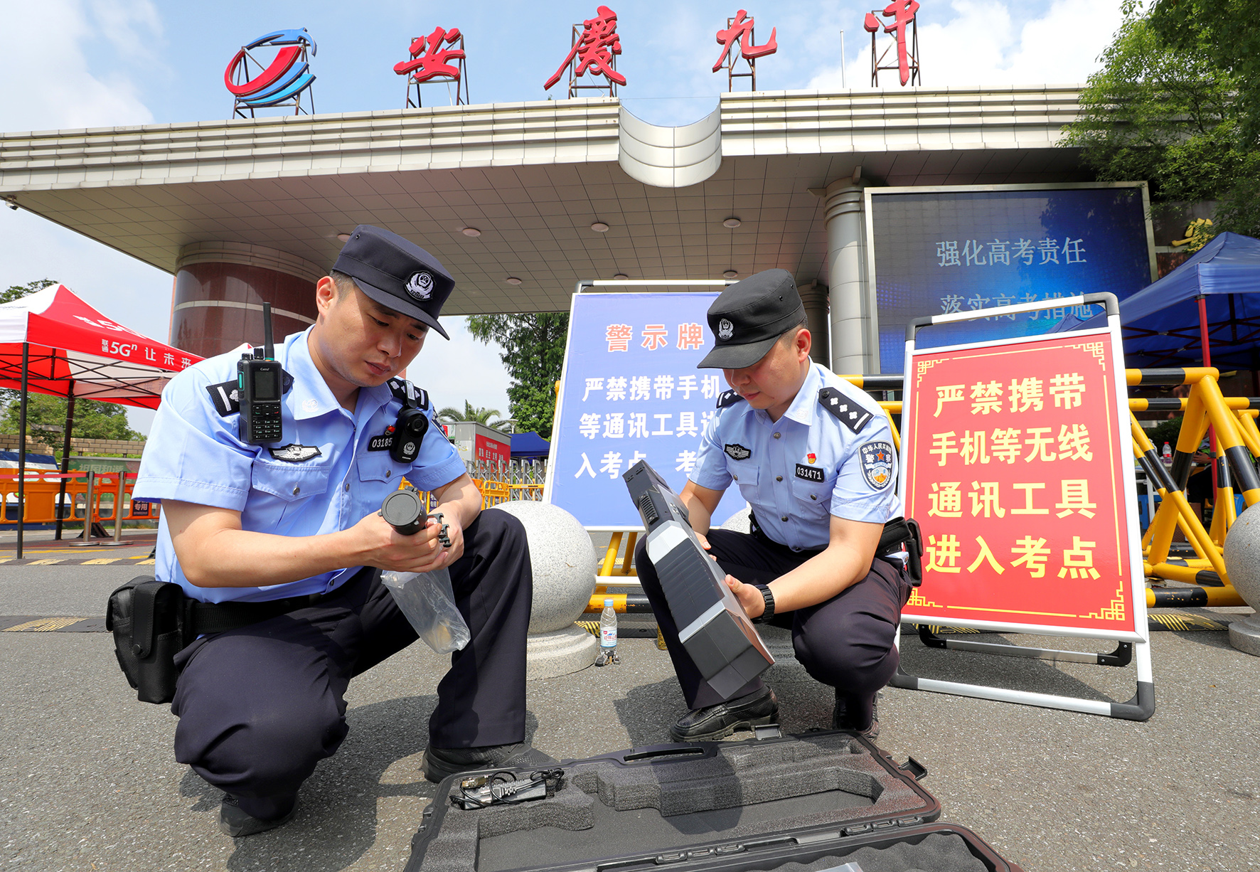 6月7日,安徽省安慶市公安局經(jīng)開分局民警正在利用無人機反制設(shè)備對考點周邊進行空中安全管控。