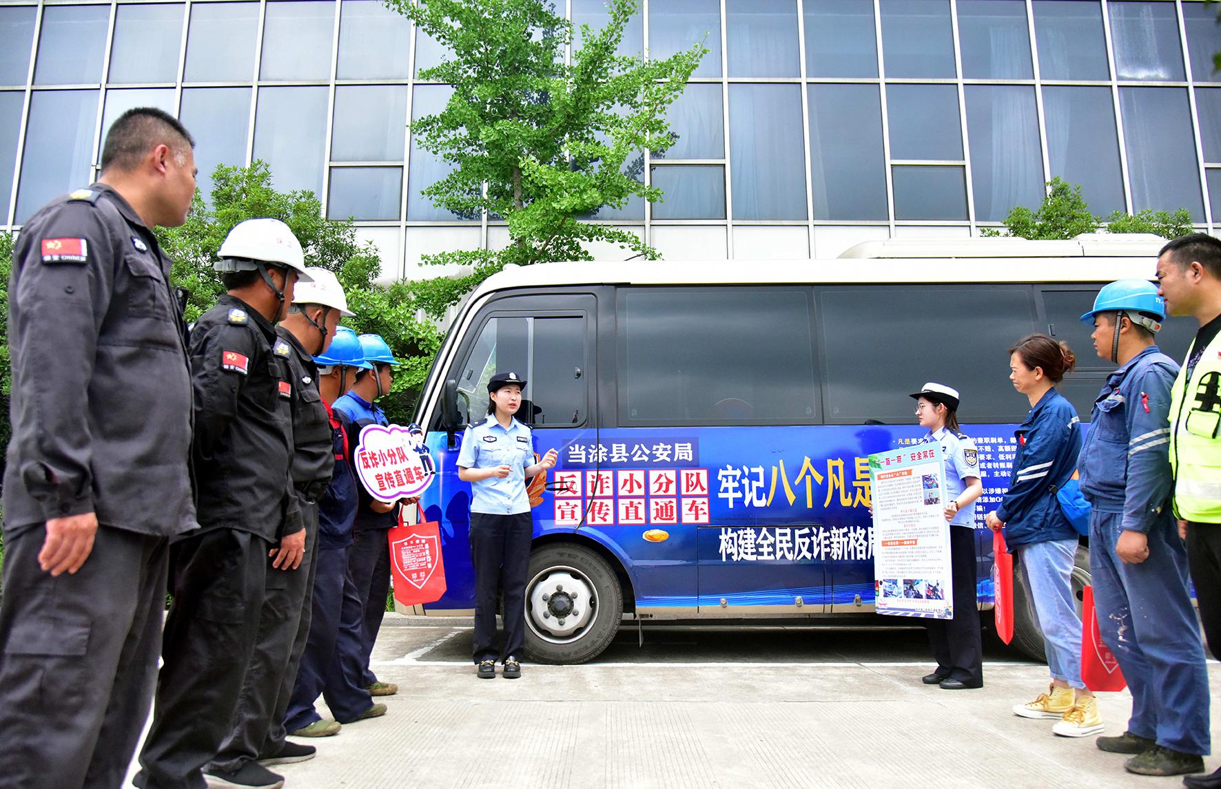 7月18日,安徽省當(dāng)涂縣公安局反詐小分隊民警向企業(yè)員工開展反詐和交通安全宣傳。