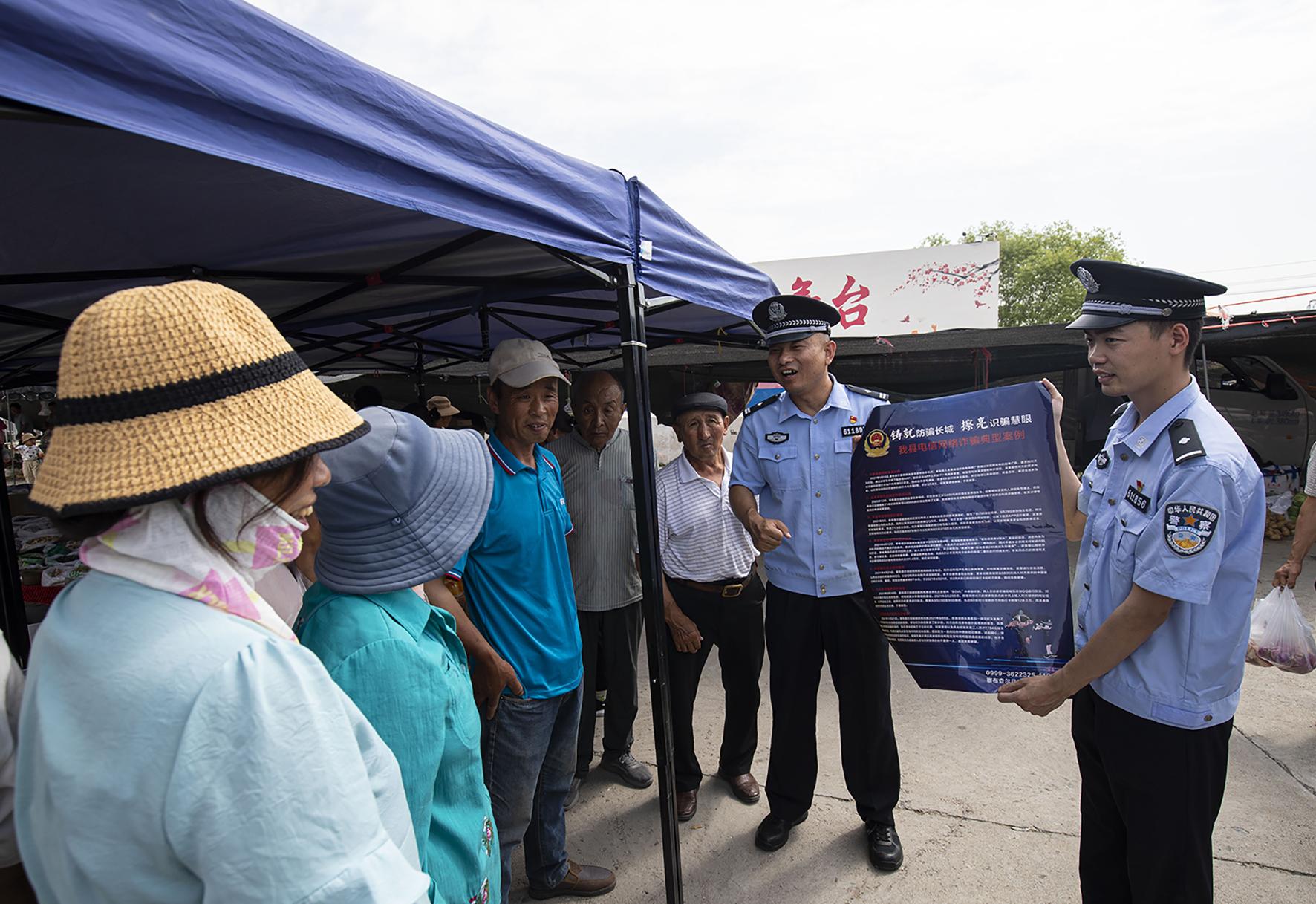 7月18日,新疆伊犁邊境管理支隊托布邊境派出所民警來到轄區(qū)集市,借助集市人員流量大、宣傳效果好的特點,向群眾講解電信網(wǎng)絡(luò)詐騙的危害和常見手段。