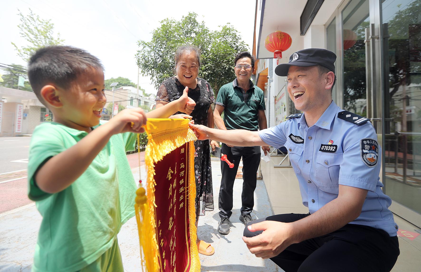 “警察叔叔,感謝您幫奶奶找回錢?!?月24日,在湖北省荊門市公安局東寶分局馬河派出所,5歲的小梅西和爺爺奶奶登門給民警送上錦旗。今年4月19日,小梅西的奶奶在網(wǎng)上購物被騙6萬多元,經(jīng)過馬河派出所研判調(diào)查,將嫌疑人抓獲并追回部分被騙錢款。