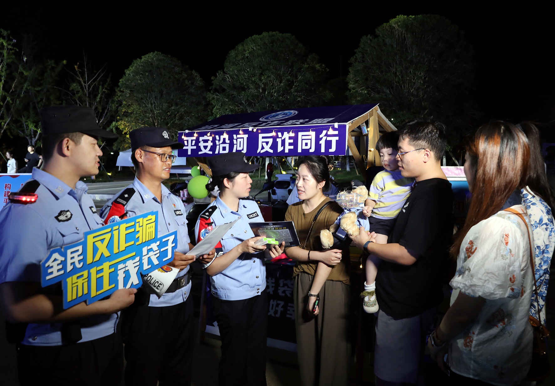 8月19日晚,江蘇省寶應(yīng)縣公安局組織青年民警走進(jìn)轄區(qū)生態(tài)體育休閑公園開展“反詐夜市”宣傳活動。