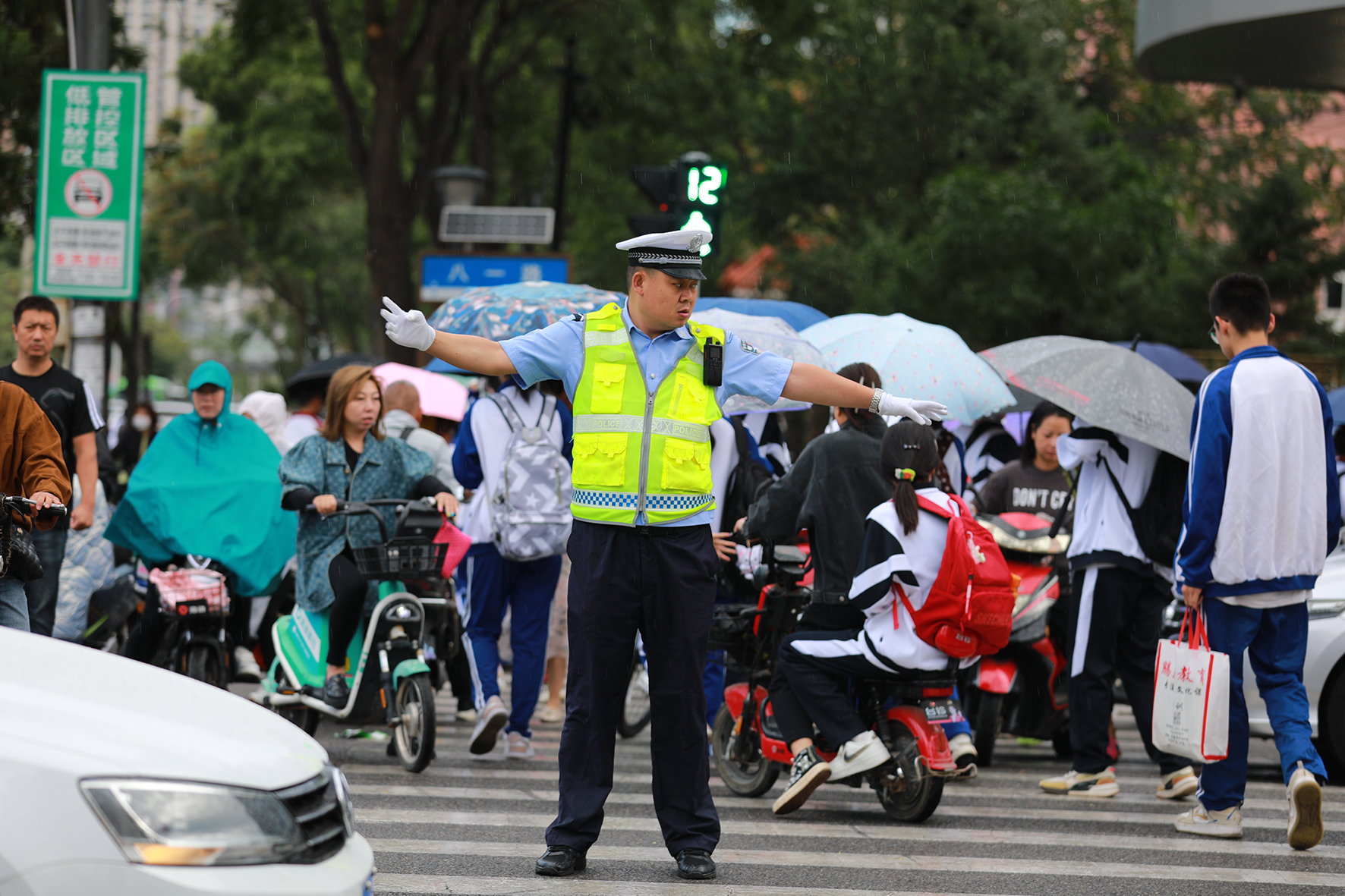8月29日,遼寧省阜新市公安局交警支隊細河交警大隊民警在護學(xué)崗執(zhí)勤。