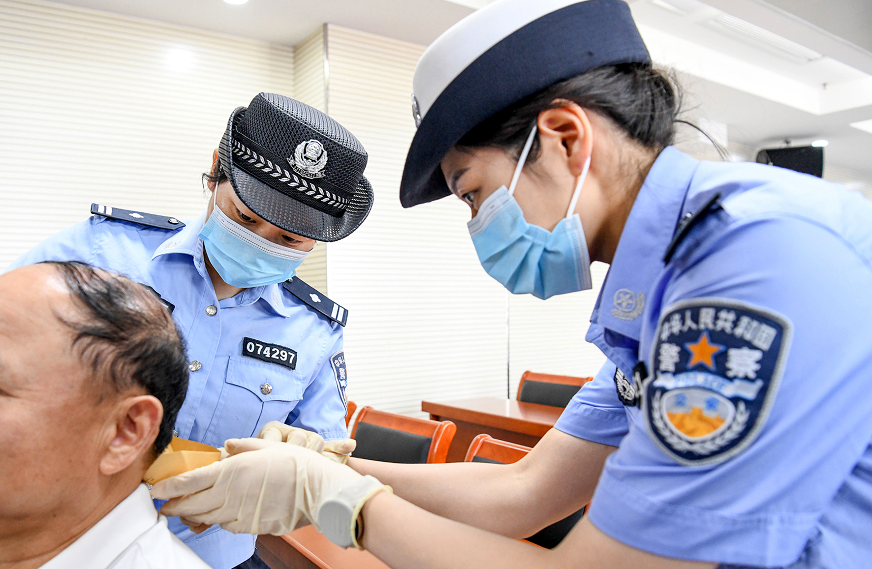 8月29日,安徽省含山縣公安局禁毒民警對校車駕駛員毛發(fā)進行采樣。