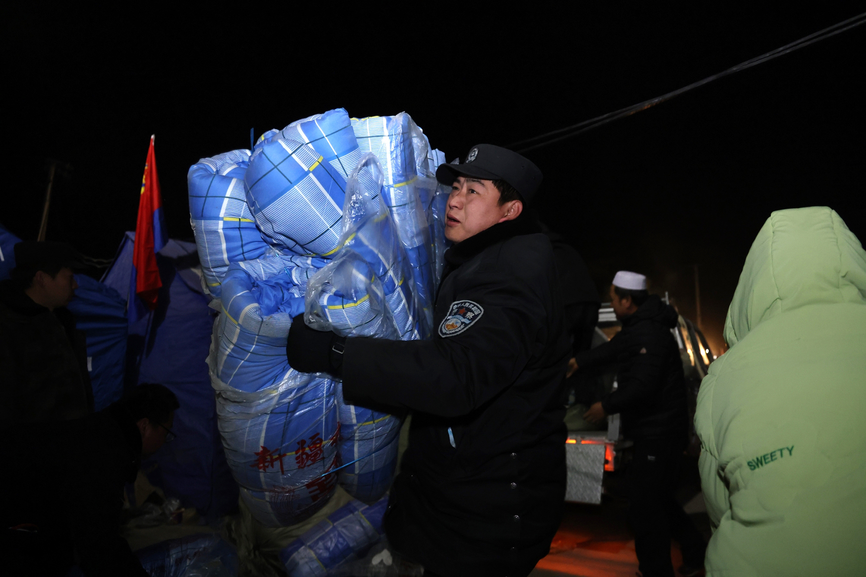 甘肅省臨夏州積石山縣發(fā)生6.2級地震后,東鄉(xiāng)縣公安局先后分兩批抽調(diào)120名警力趕赴地震災(zāi)區(qū),全面參與群眾心理安撫、疏通保暢、轉(zhuǎn)移安置、物資分發(fā)、安置點(diǎn)秩序維護(hù)等工作,為災(zāi)區(qū)群眾織起“安全網(wǎng)”。