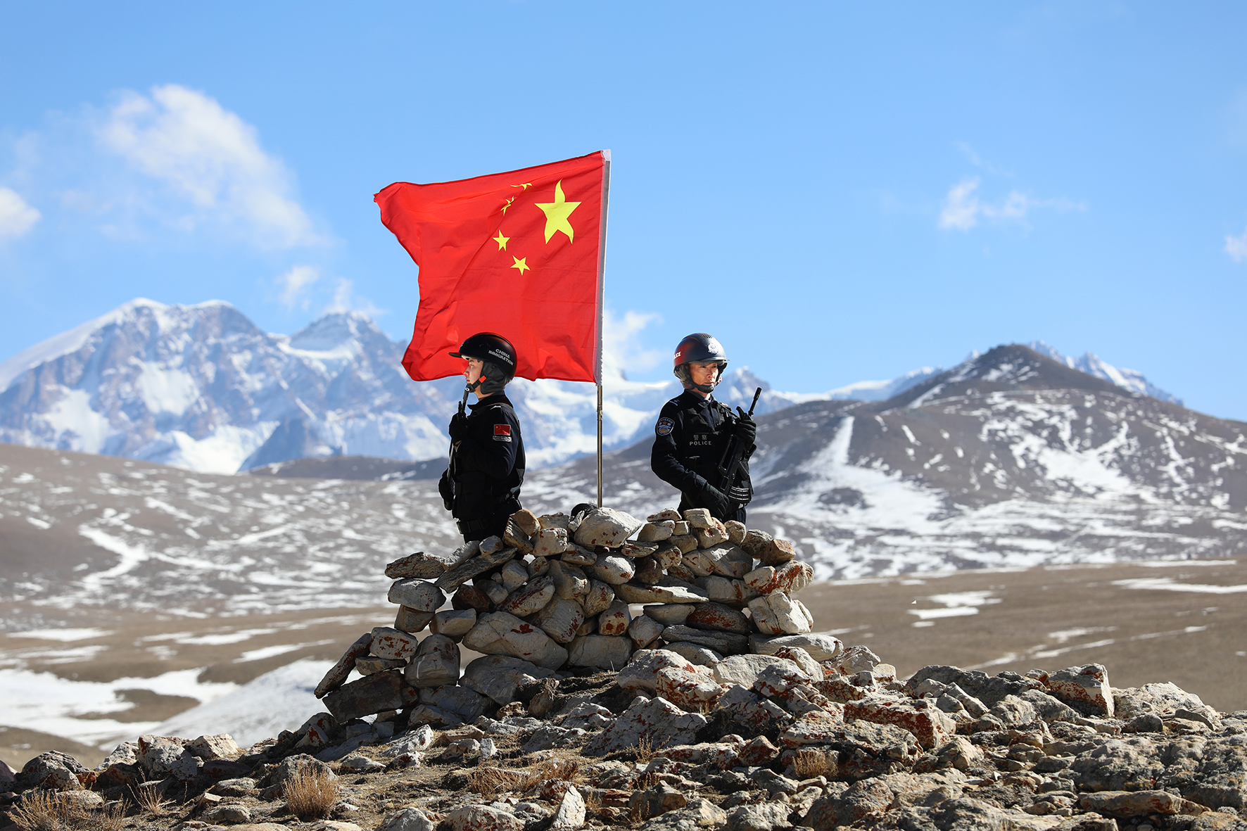 圖為崗巴邊境派出所民警在海拔5300米的簡(jiǎn)易點(diǎn)位執(zhí)勤。