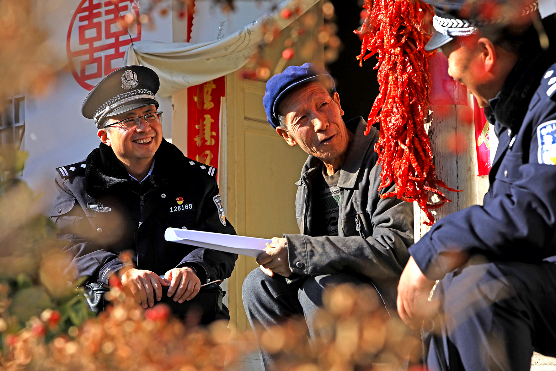 圖為1月6日,民警在城關鎮(zhèn)賈胡村走訪群眾。