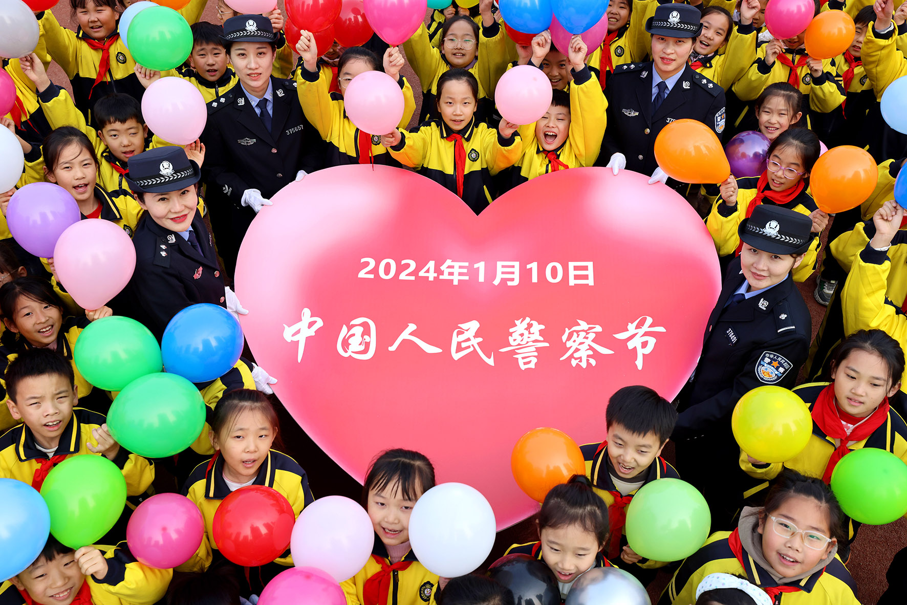 1月9日,河南省鄭州市公安局金水分局巡特警大隊隊員們走進緯五路第一小學,與師生們共同開展“別樣警察節(jié) 我是110”宣傳活動。