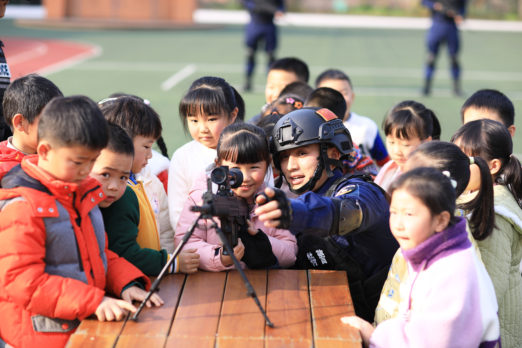 1月8日,貴州省赤水市公安局組織民警走進千藝幼兒園,讓小朋友們“零距離”體驗警用裝備。