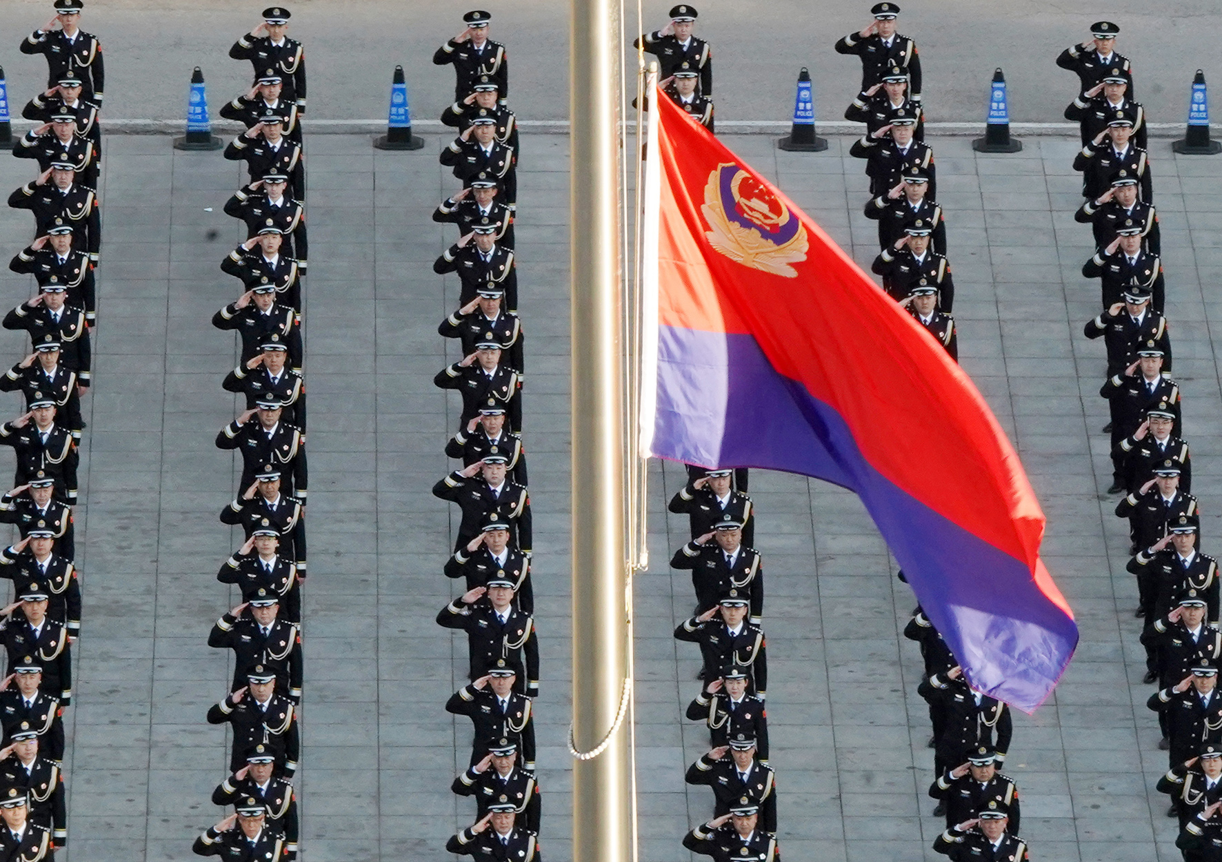 1月10日,上海市公安局崇明分局舉行了隆重的升警旗儀式。