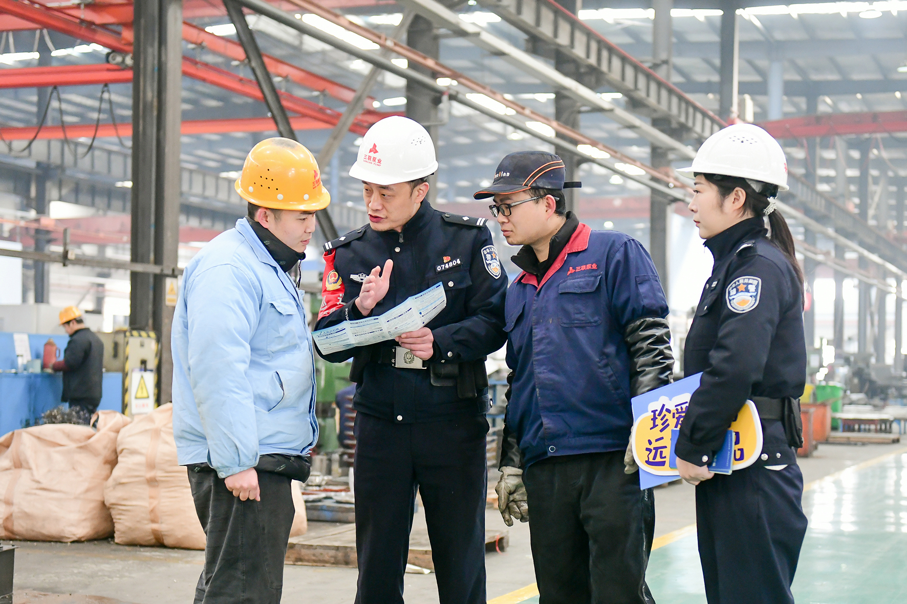 1月11日,安徽省馬鞍山市和縣公安局民警正在企業(yè)進行走訪,了解職工薪資發(fā)放等情況,并向員工開展法治宣傳。