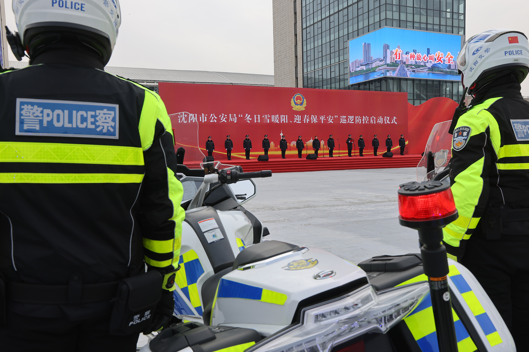 1月20日,遼寧省沈陽市公安局在沈陽國際展覽中心廣場舉行“冬日雪暖陽 迎春保平安”巡邏防控啟動儀式。