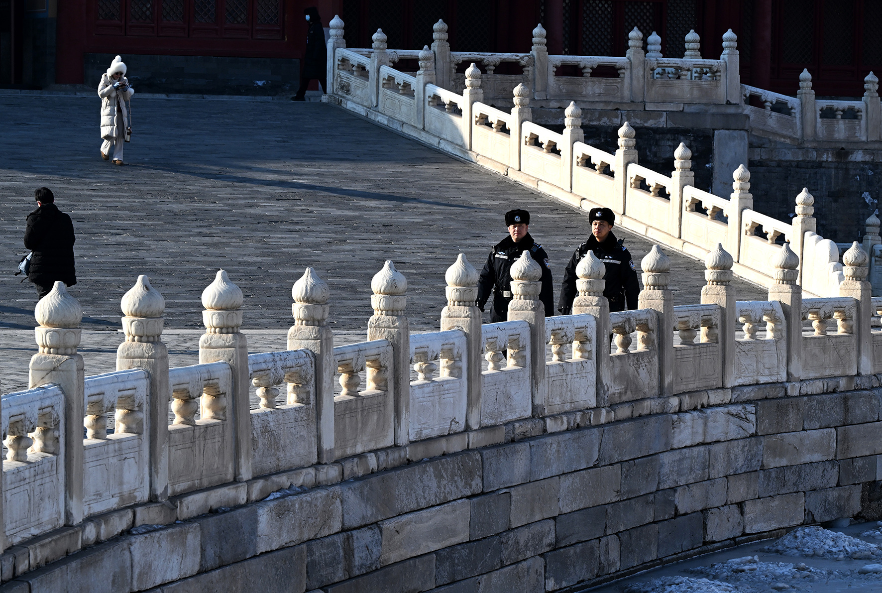 民警在金水橋一側的熙和門附近巡邏。故宮內的各個門廊、殿宇以及角落都是民警日常巡邏的區(qū)域。