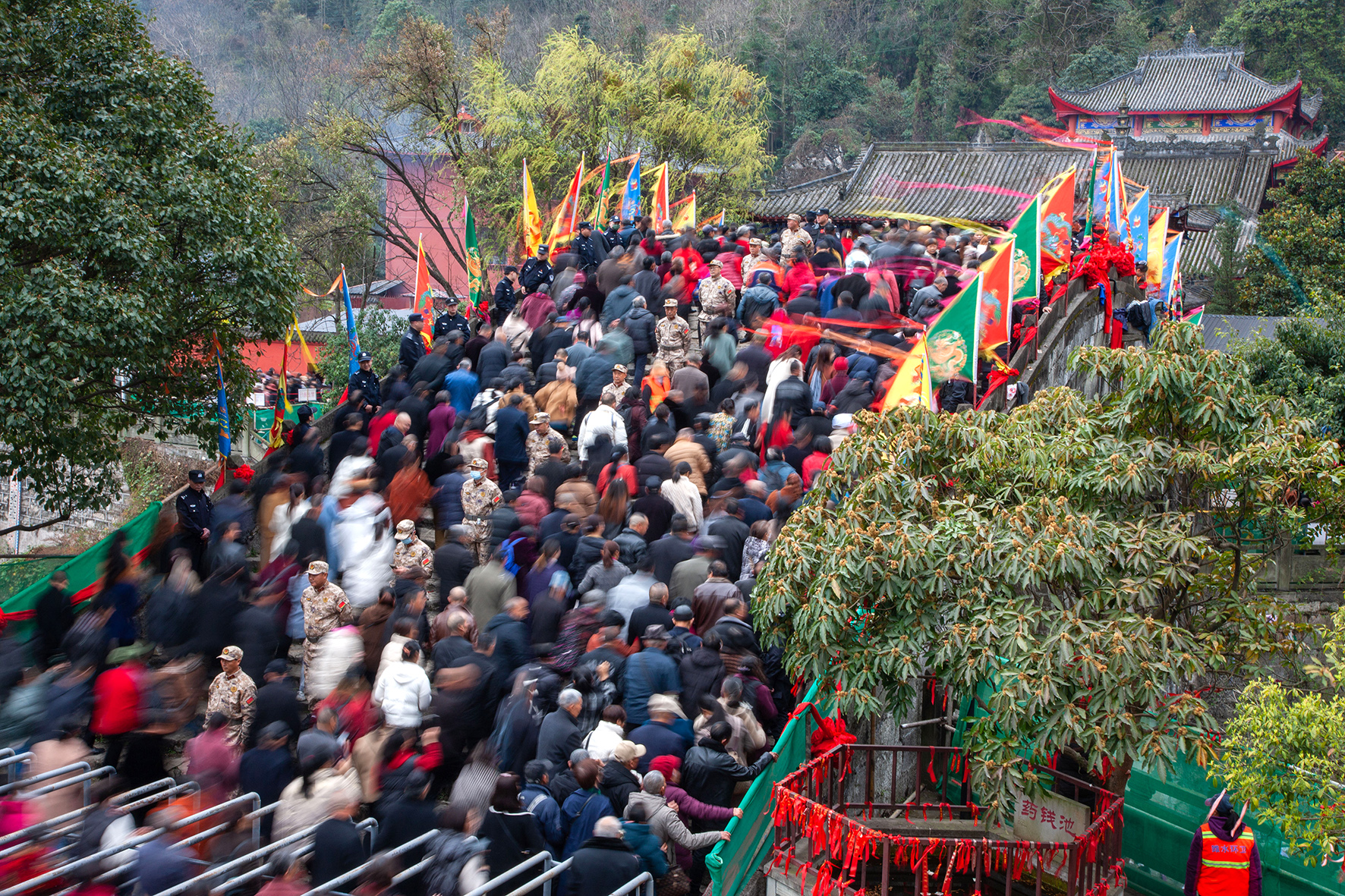3月15日,四川省綿陽市安州區(qū)雎水太平橋開展春社“踩橋”大型民俗活動。綿陽公安為確?!安葮颉被顒影踩?,出動1390余名警力,全力維護(hù)著現(xiàn)場秩序,守護(hù)平安。