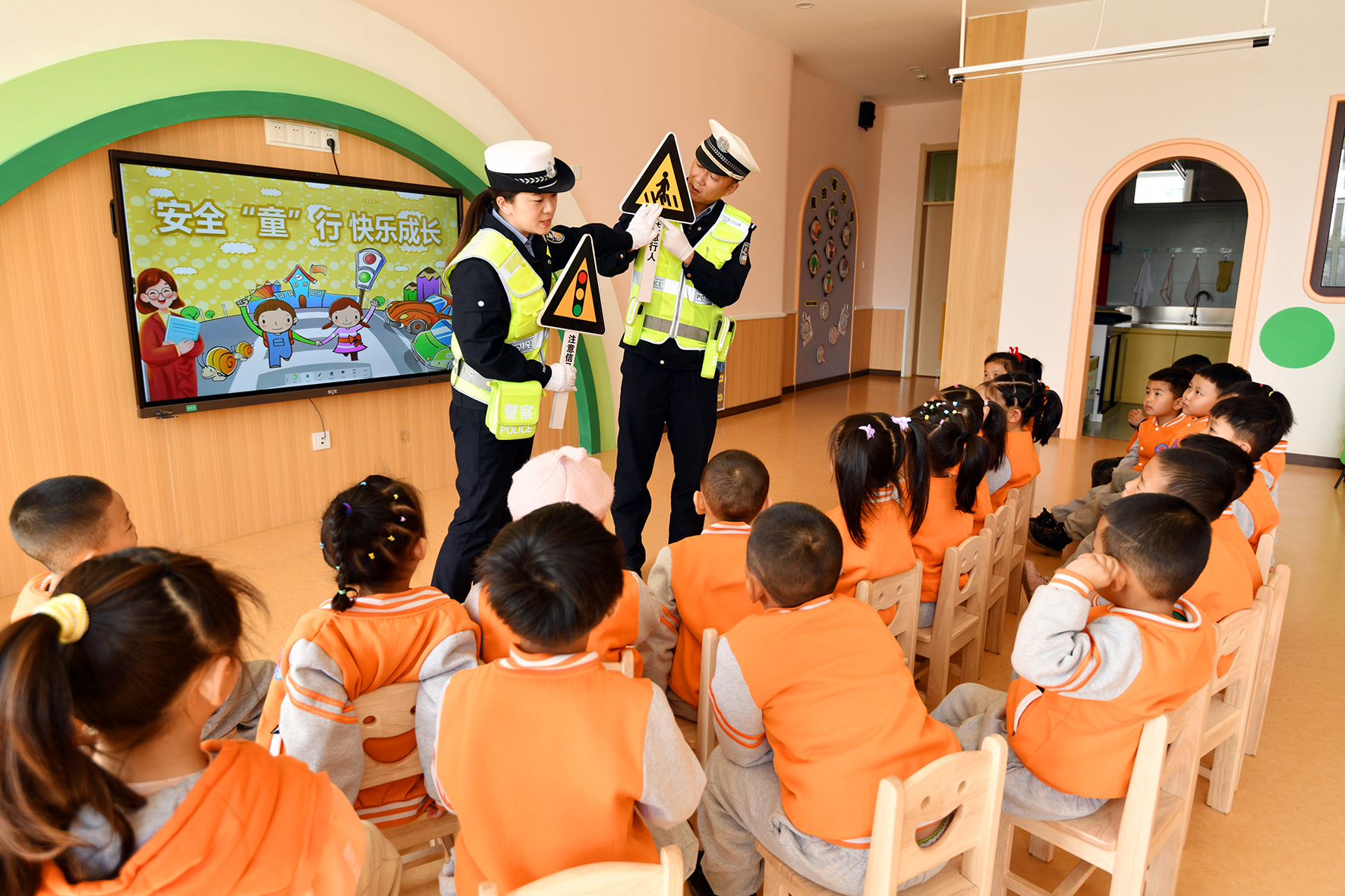 3月21日,甘肅省臨澤縣公安局交警大隊(duì)民警走進(jìn)西關(guān)幼兒園,通過現(xiàn)場授課、有獎(jiǎng)競答、認(rèn)識(shí)交通指示牌等方式普及交通安全知識(shí)。