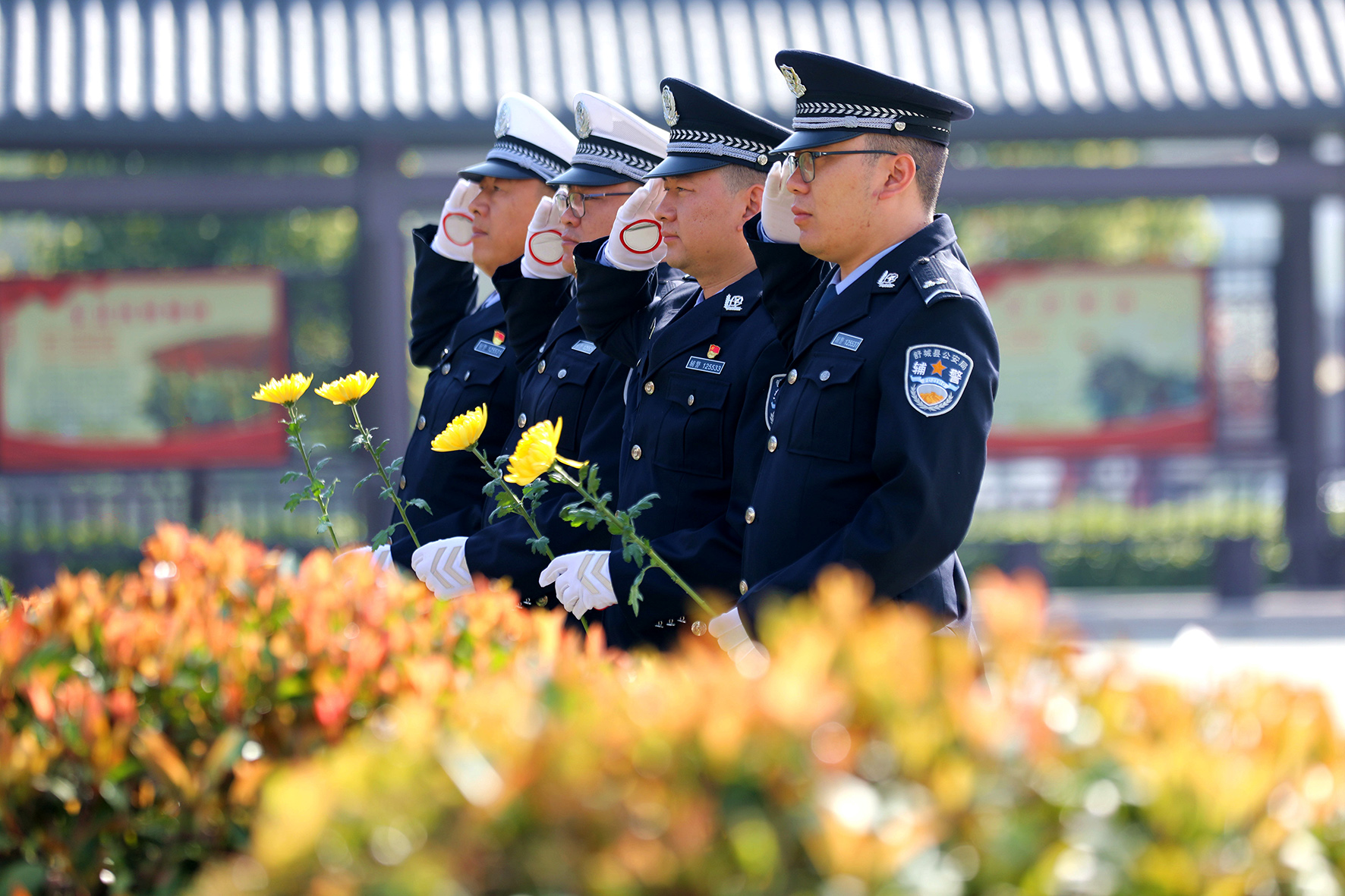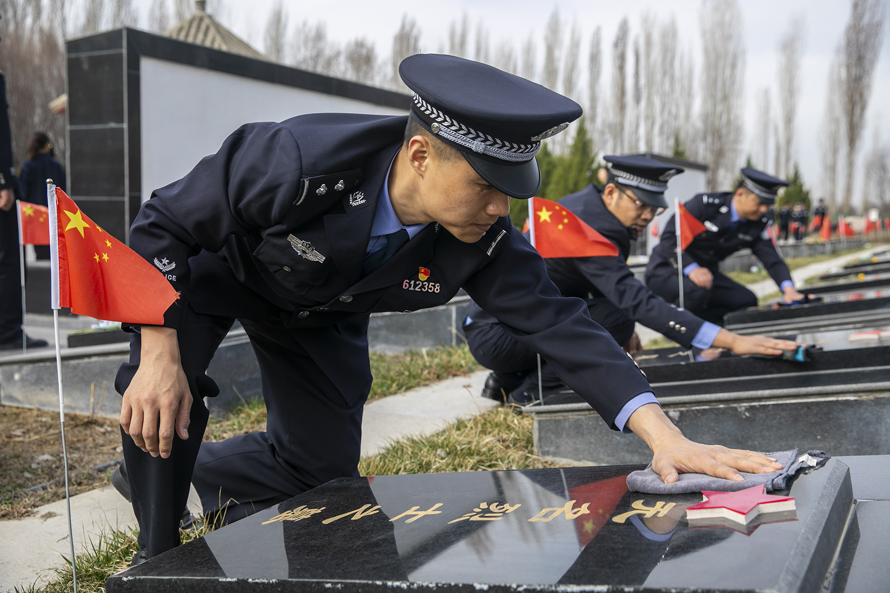 4月1日,山東省棗莊市公安局市中分局交通警察大隊(duì)民警輔警在天馬山烈士陵園舉行祭奠活動(dòng)。