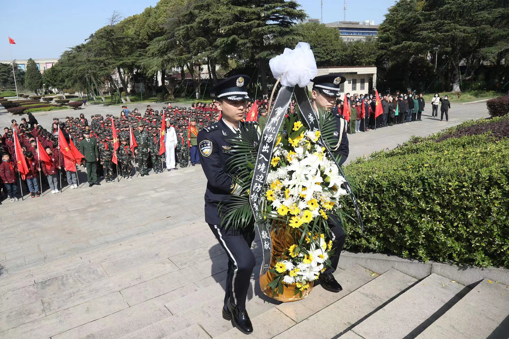 3月29日,常州機(jī)場出入境邊防檢查站攜手天寧區(qū)退役軍人事務(wù)管理局、東方小學(xué)前往常州市烈士陵園開展清明祭掃活動(dòng),祭奠革命先烈,傳承紅色基因。