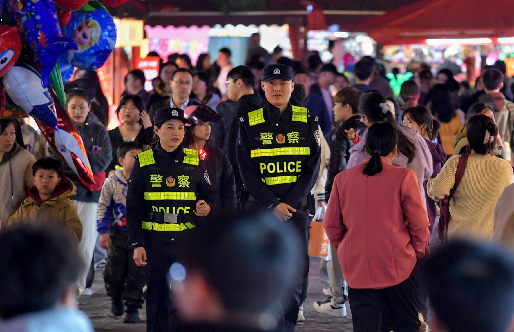 4月5日,山東省濟(jì)南市公安局市中區(qū)分局特巡警大隊(duì)民警在老商埠區(qū)巡邏執(zhí)勤,為市民游客提供服務(wù)。