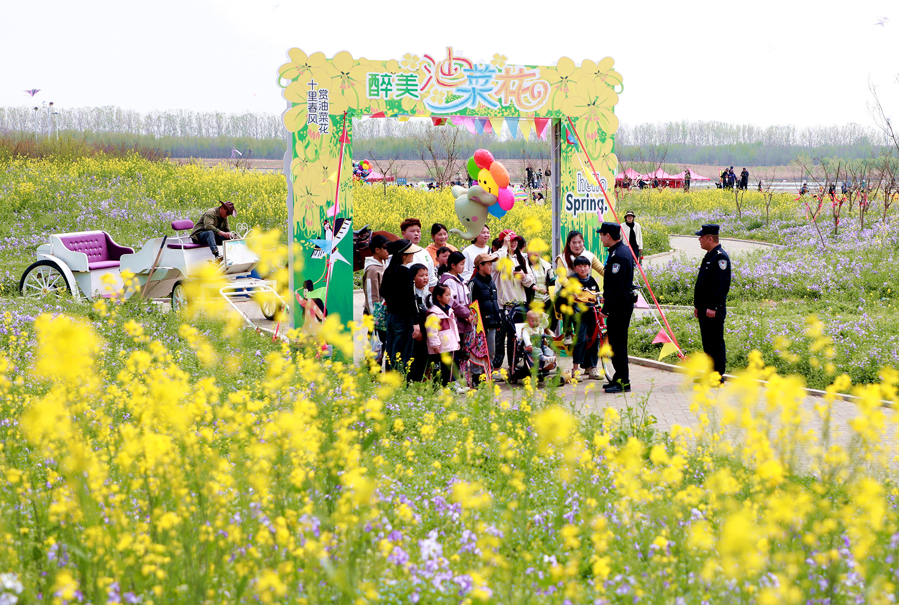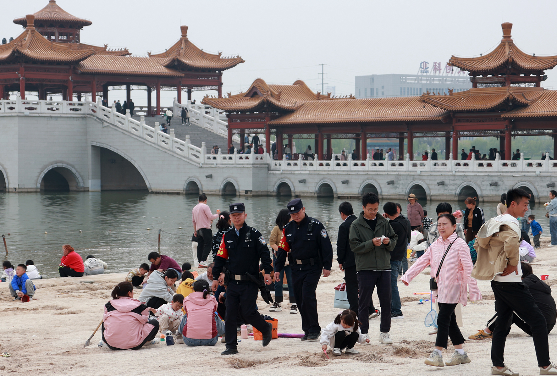 4月5日,陜西省大荔縣公安局官池派出所抽調(diào)警力在沙苑水庫開展巡邏,服務(wù)游客。