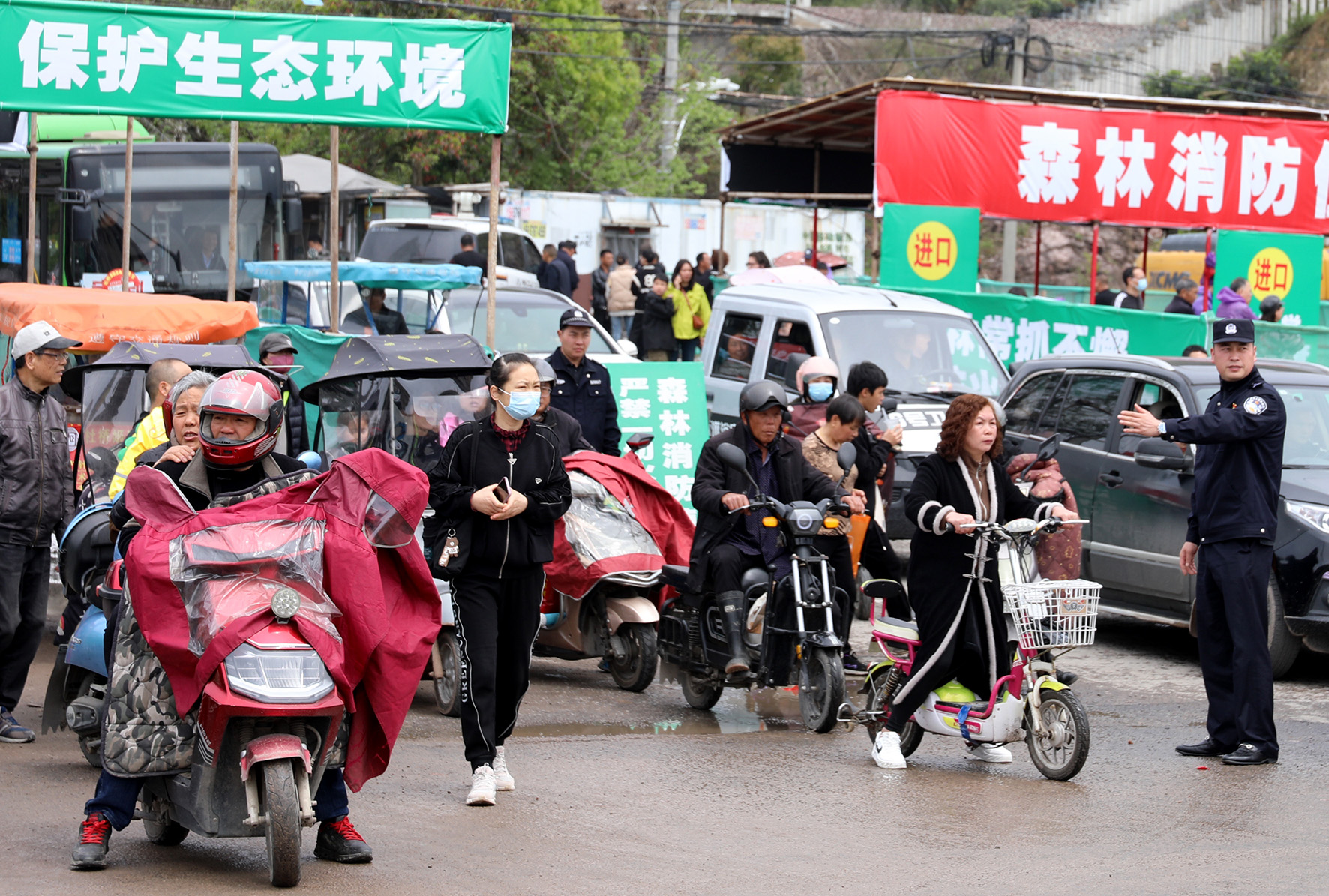 4月4日,山東省棗莊市公安局嶧域區(qū)分局民輔警在青檀寺古廟會(huì)開展交通疏導(dǎo)、巡邏宣防、安全檢查、服務(wù)群眾等工作,全力守護(hù)廟會(huì)安全有序。