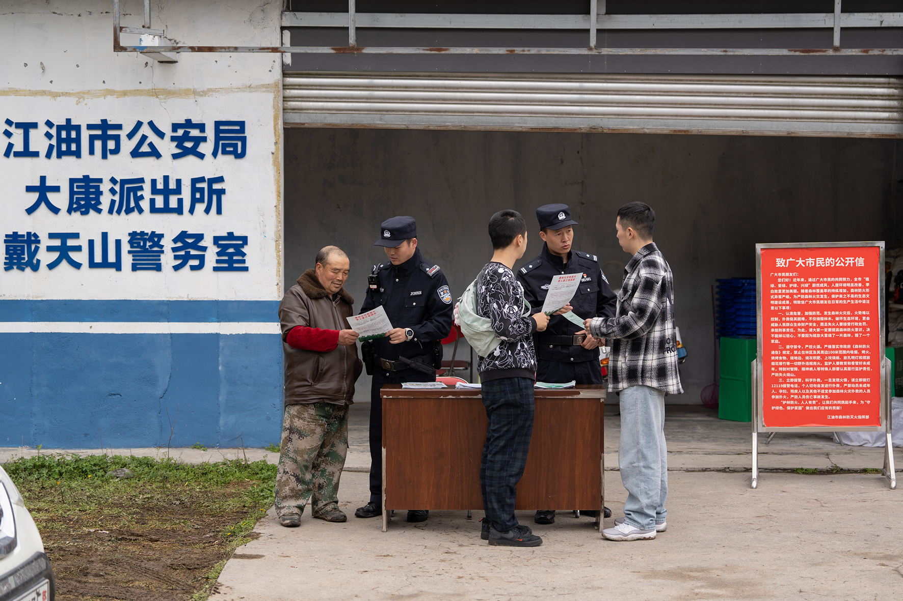 圖為4月7日,巡邏隊員在巡山護林,并向游客和村民講解防火知識。