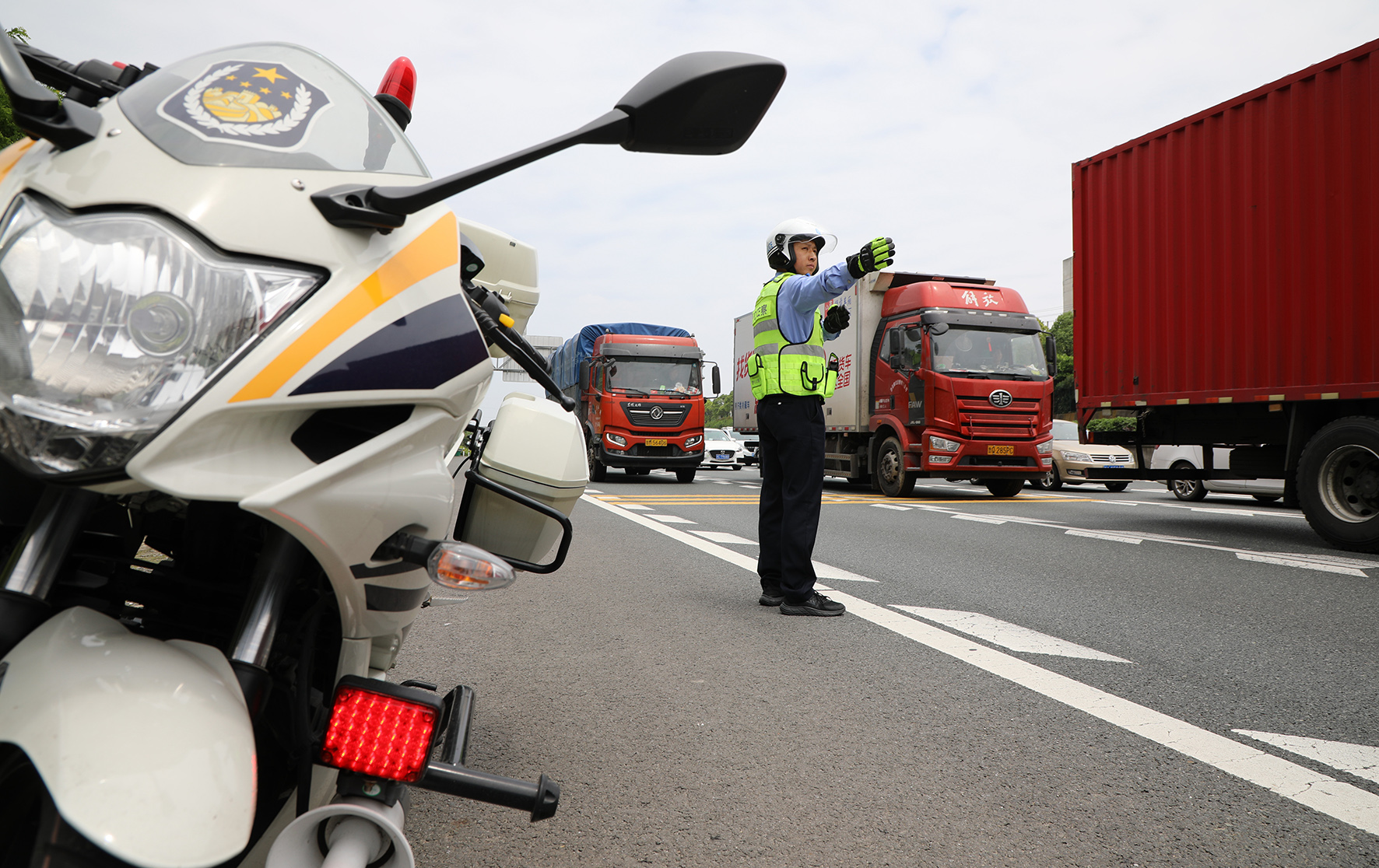 5月1日,江西省公安廳高速公路公安局直屬二分局第一大隊(duì)民警在重點(diǎn)路段疏導(dǎo)指揮維護(hù)交通秩序。