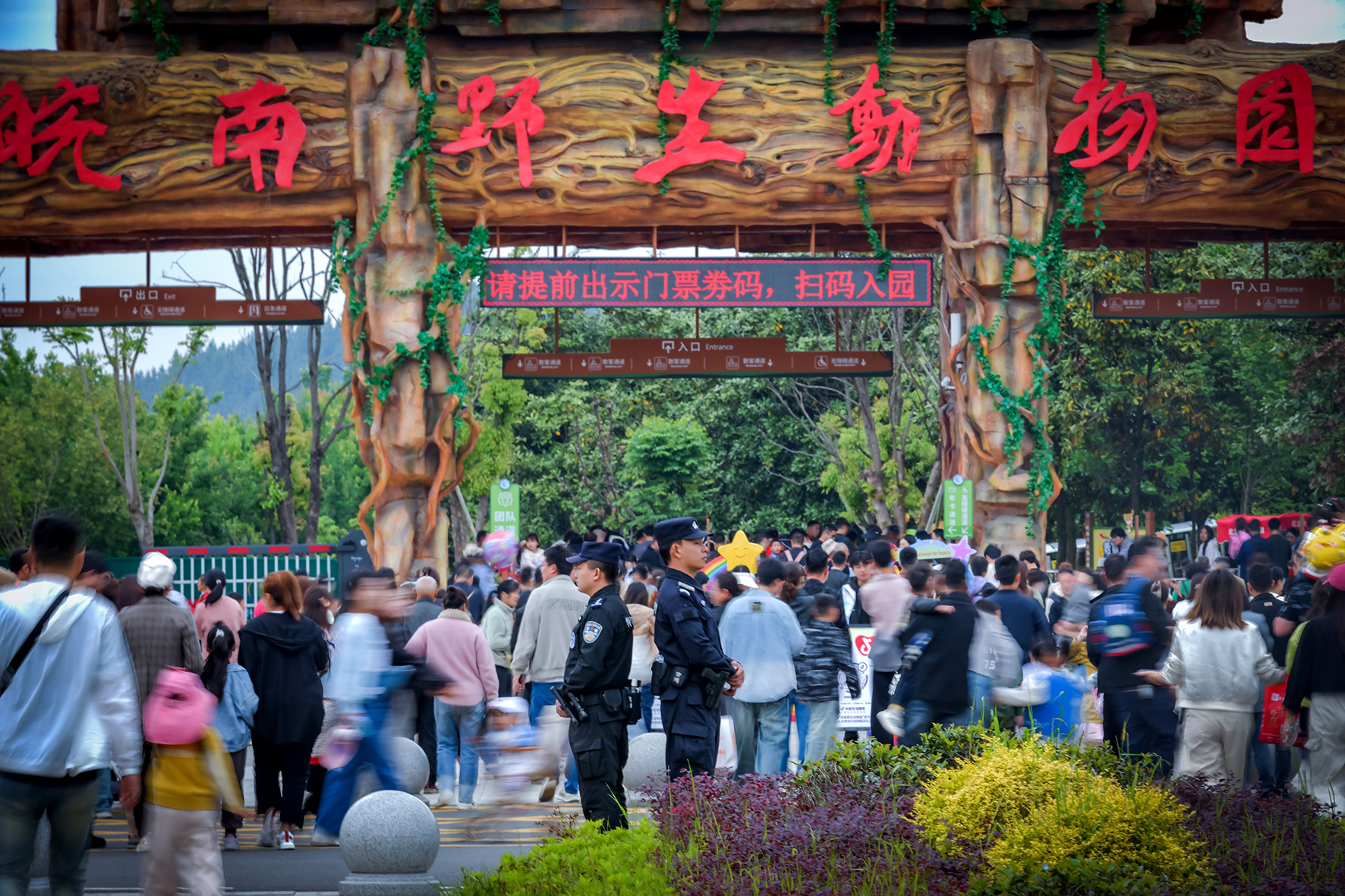 5月2日,安徽省涇縣公安局民警在皖南野生動(dòng)物園開(kāi)展巡邏執(zhí)勤。