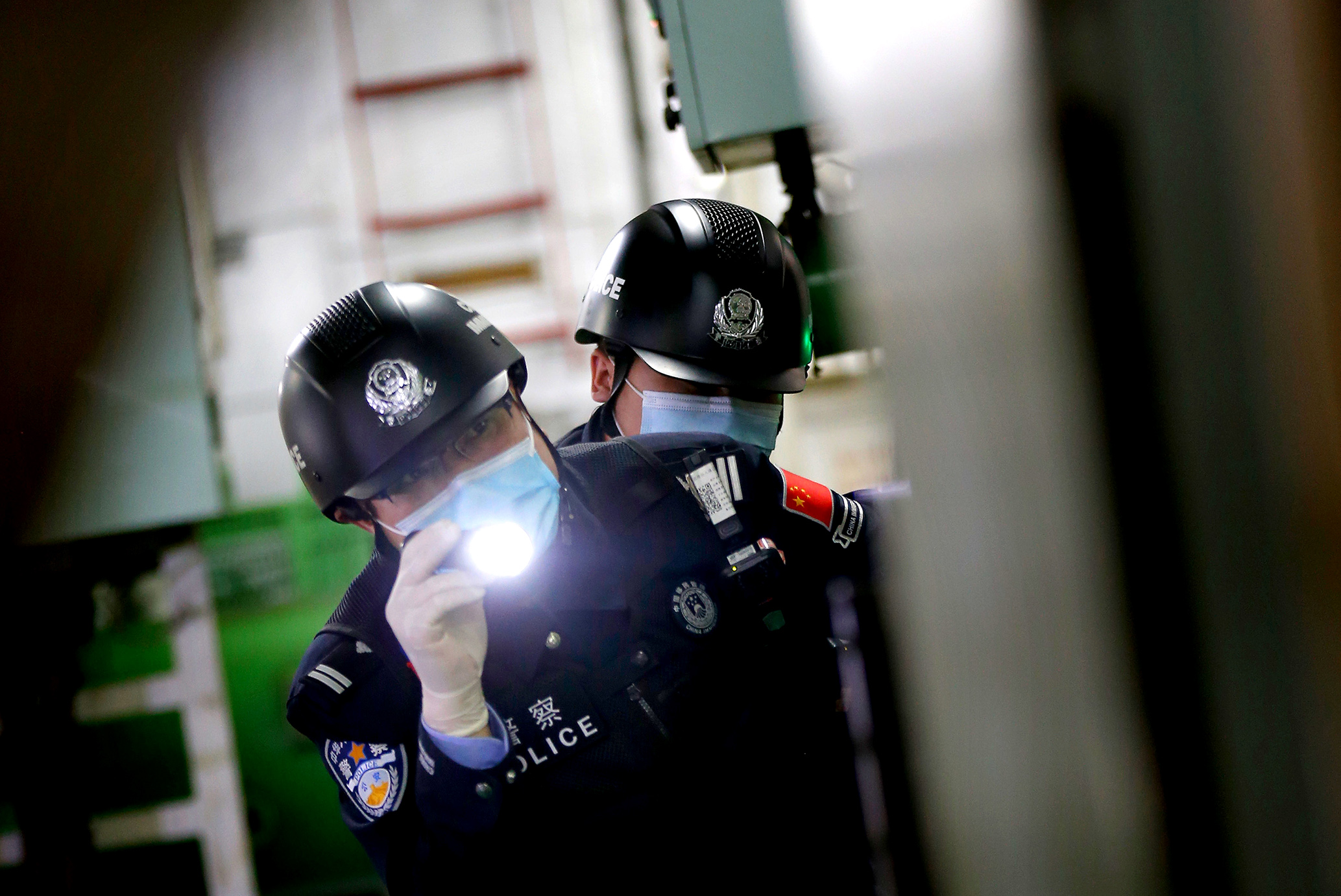 5月2日,江蘇南京港出入境邊防檢查站執(zhí)勤民警正在檢查外輪貨倉(cāng)。