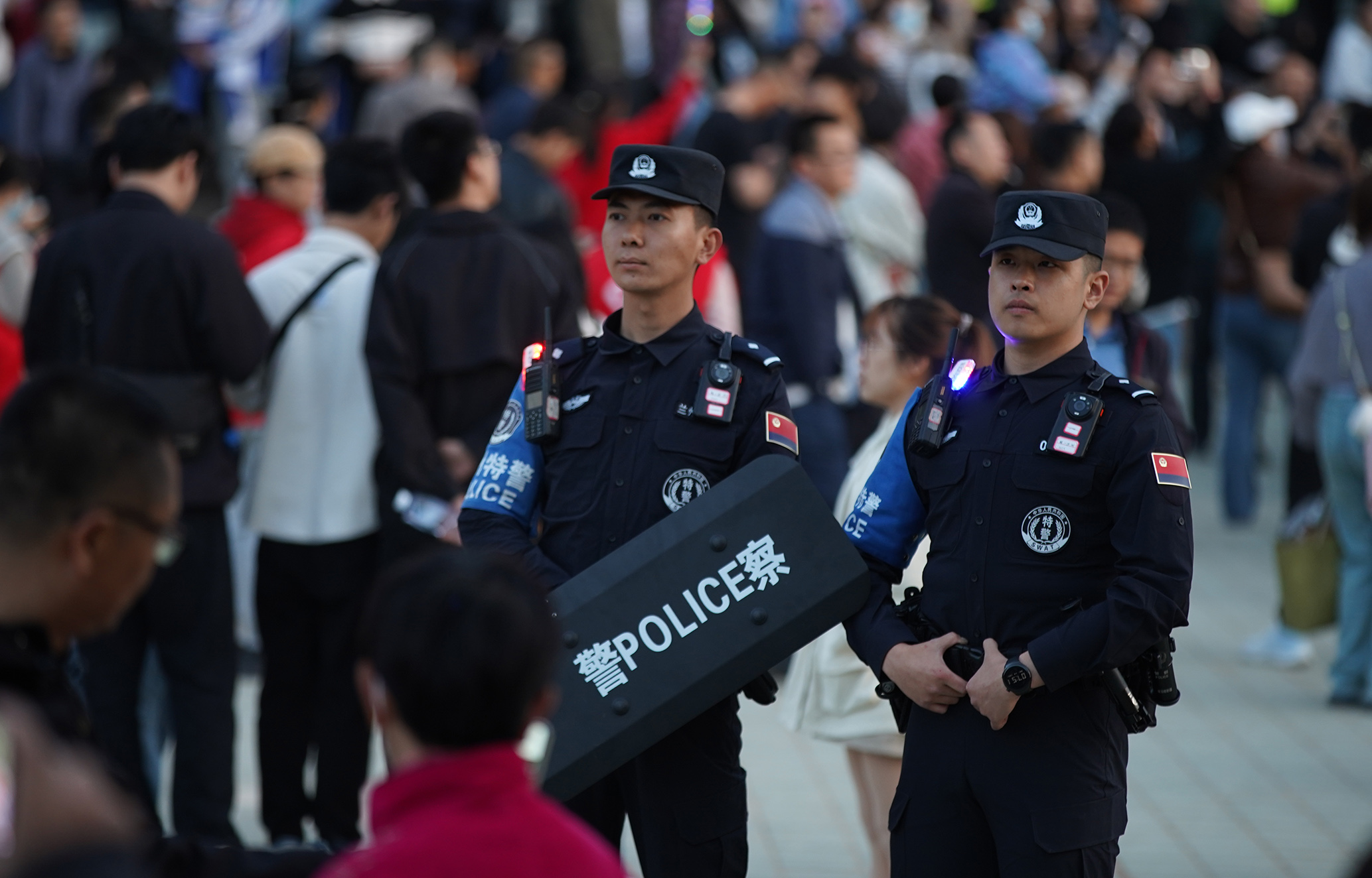 5月1日,山東省煙臺(tái)市公安局牟平分局輔警在里蹦島演唱會(huì)現(xiàn)場(chǎng)執(zhí)勤。