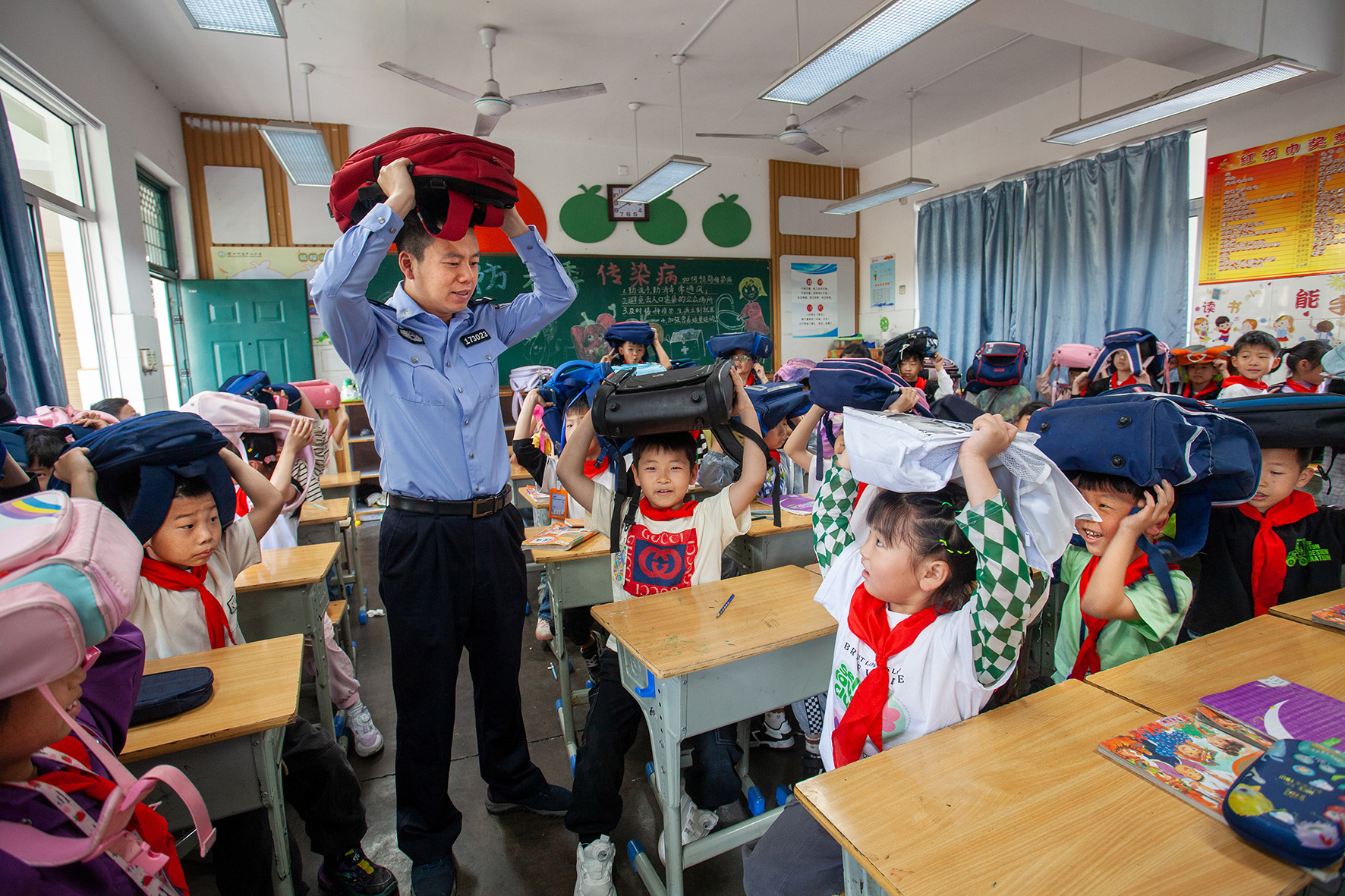 5月9日,安徽省合肥市公安局瑤海分局龍崗派出所民警走進轄區(qū)學(xué)校開展防震減災(zāi)應(yīng)急疏散演練活動。